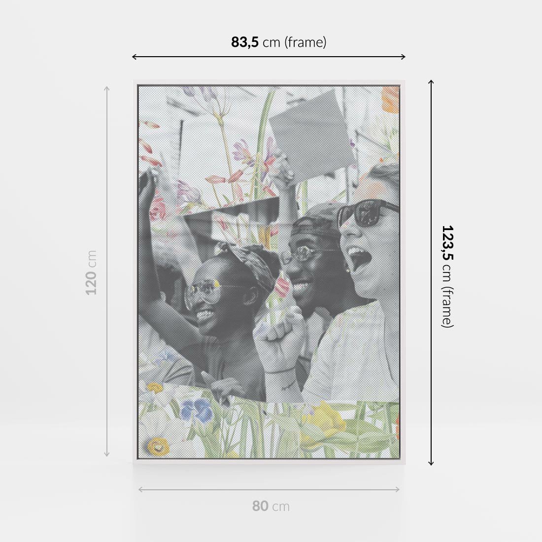 Obraz w ramie 80x120 - Księga zaklętych marzeń - kolaż, czarnobiałe zdjęcie wesołych młodych ludzi - rama biała