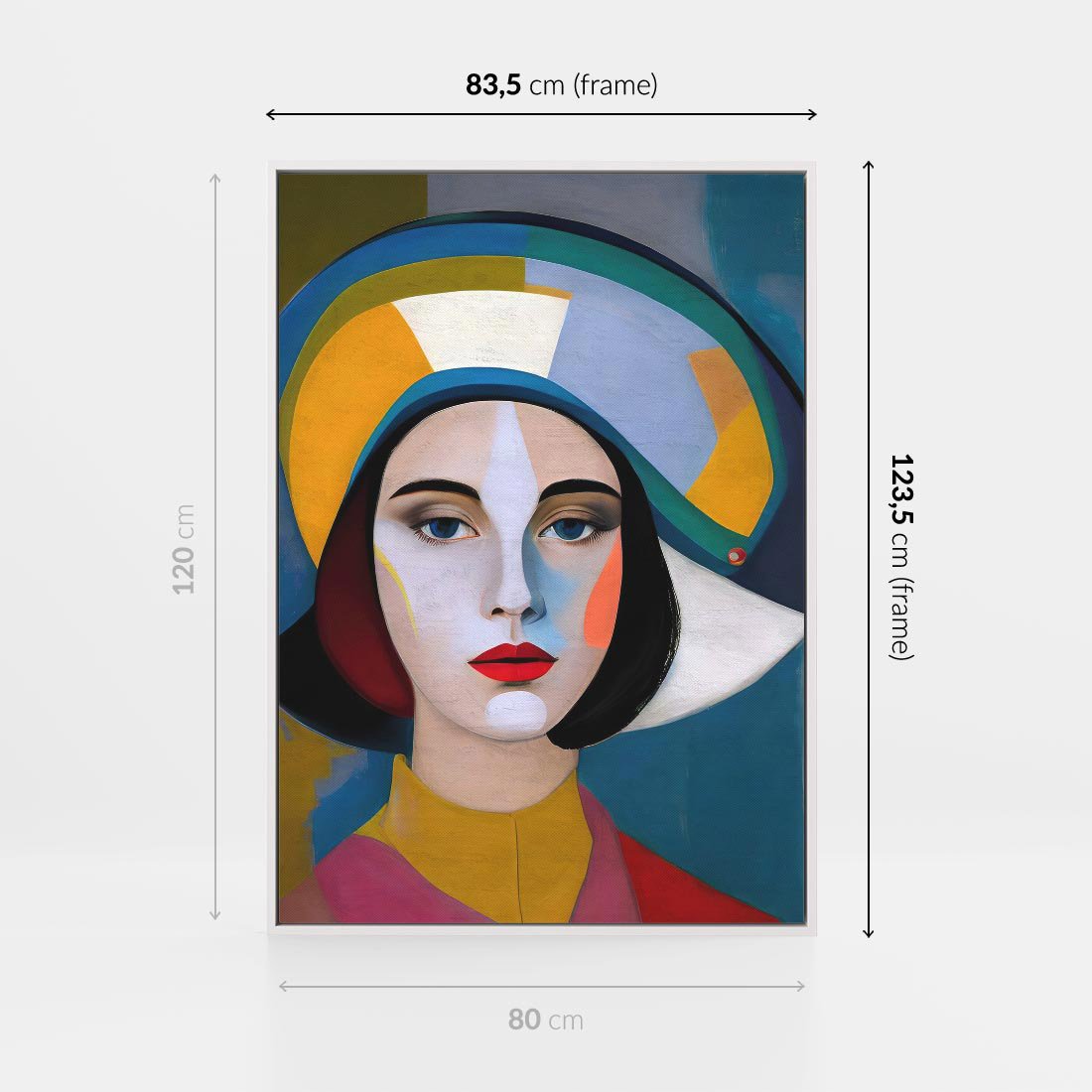 Obraz w ramie 80x120 - Kształtujące Widzenia - abstrakcyjny obraz olejny, portret twarzy kobiety - rama biała