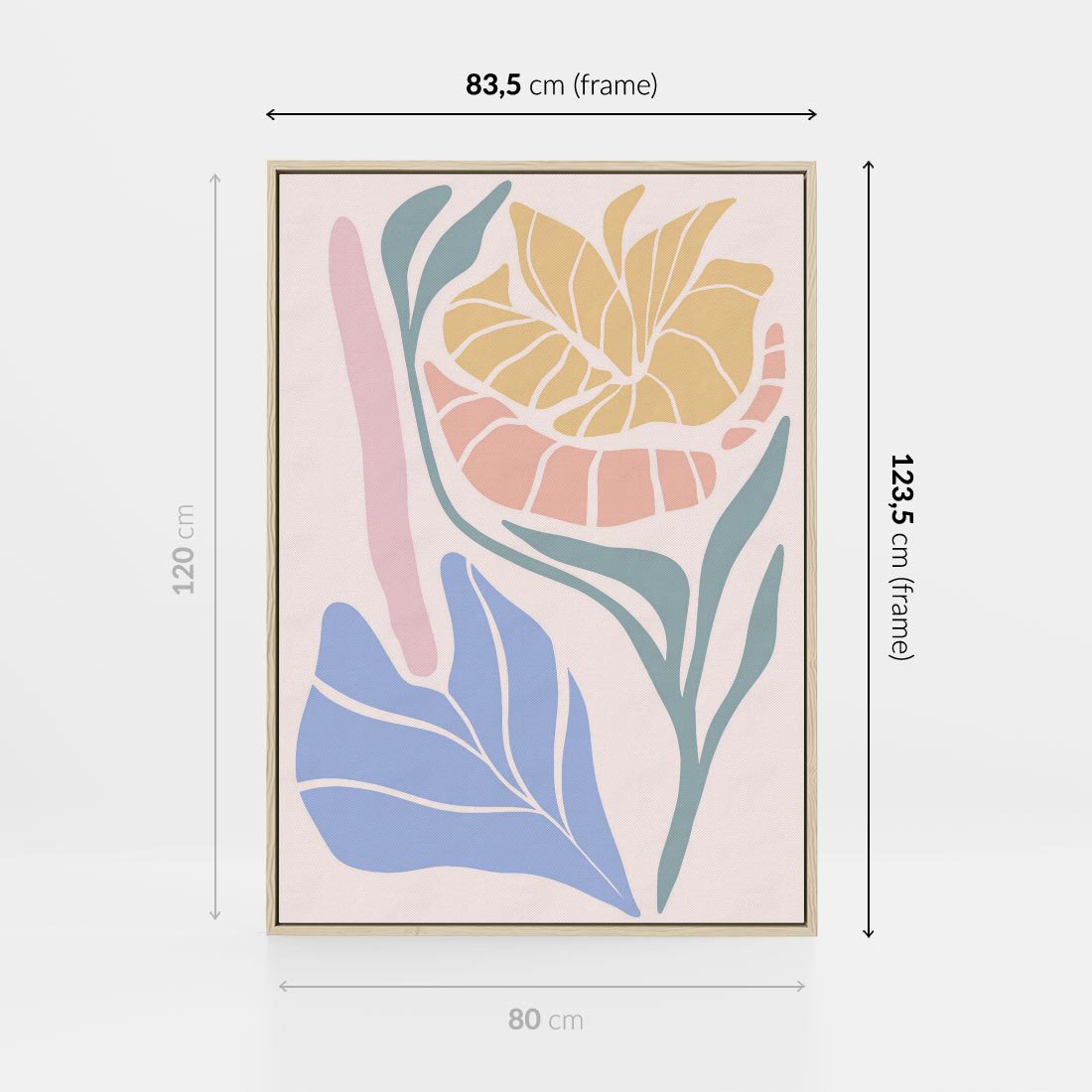 Obraz w ramie 80x120 - Kwiatowe Granice Kształtów - nowoczesny plakat, kwiaty w pastelowych kolorach - rama drewno