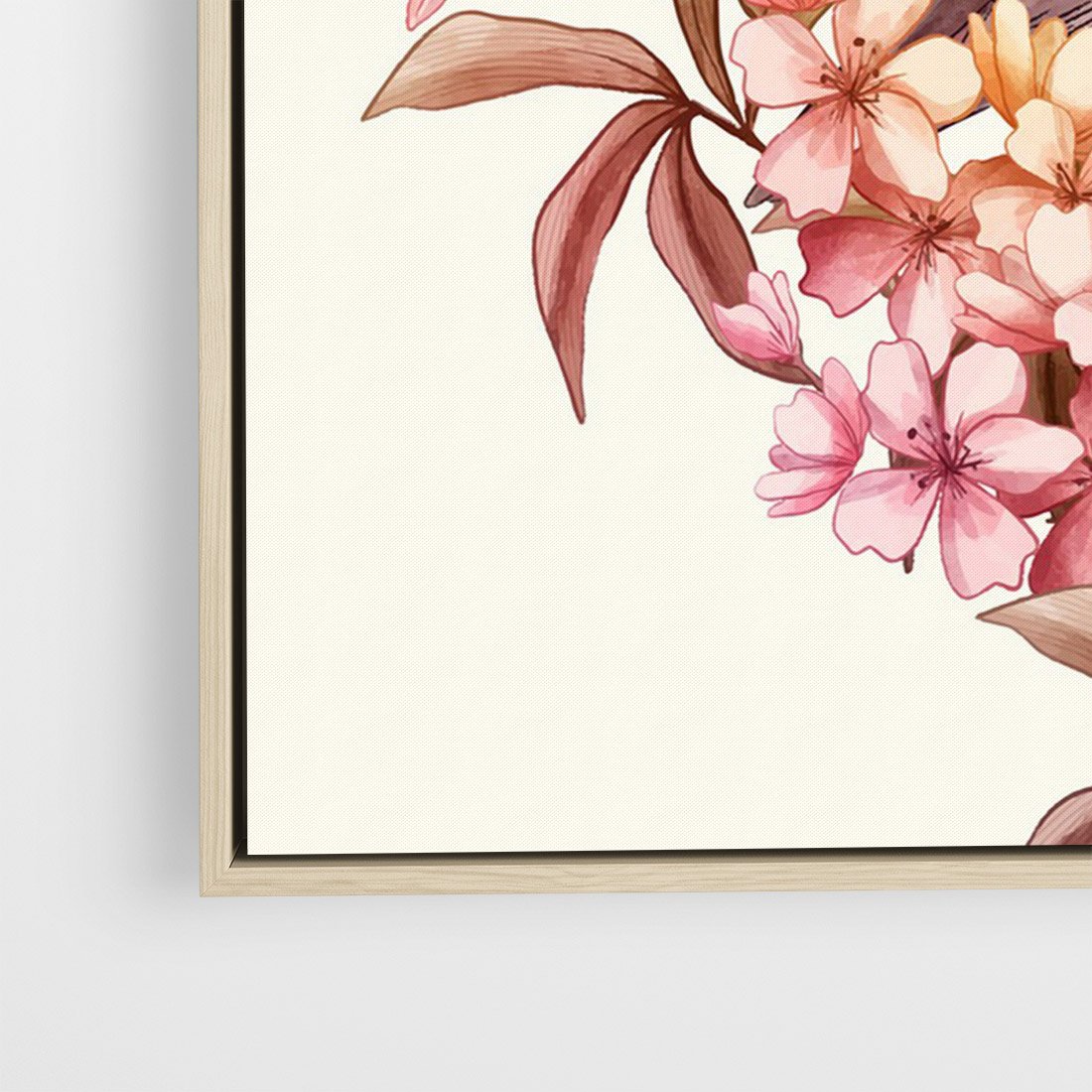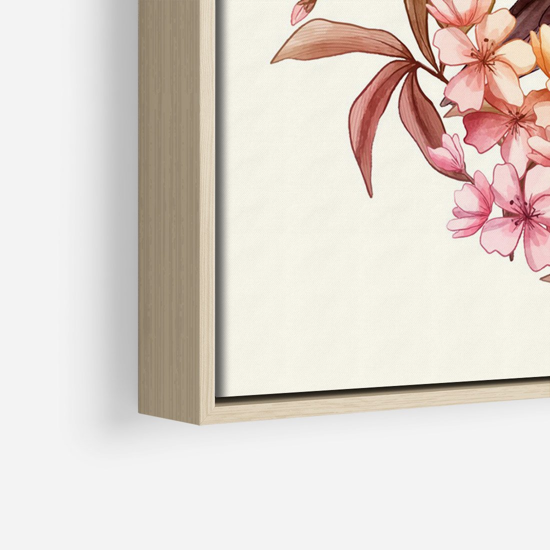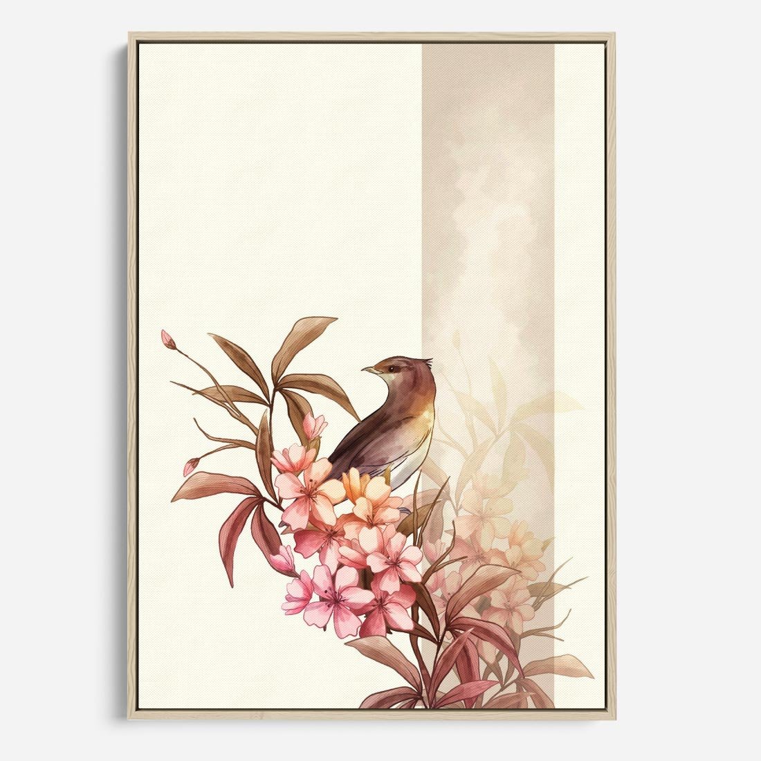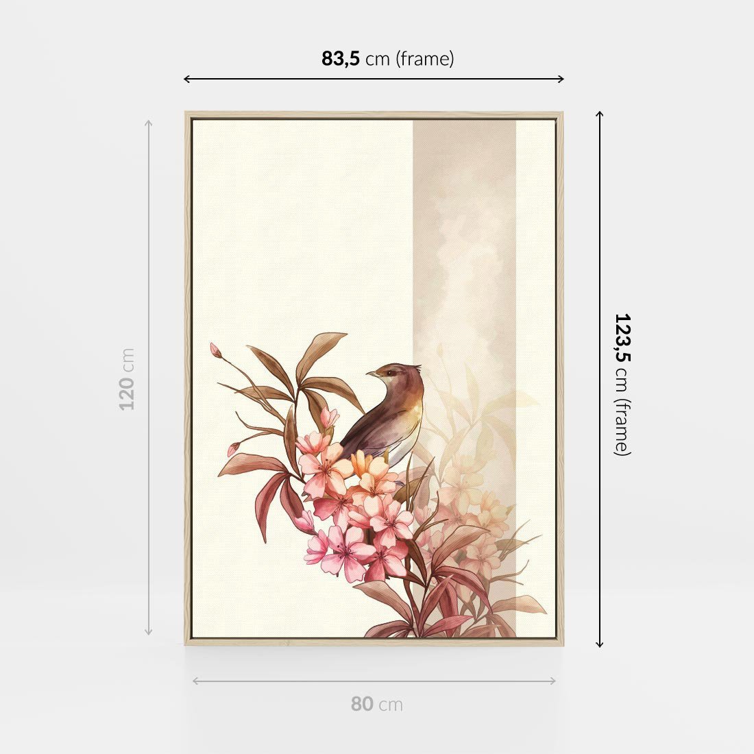 Obraz w ramie 80x120 - Kwiatowe Zanurzenie - japońska sztuka, ptak - rama drewno