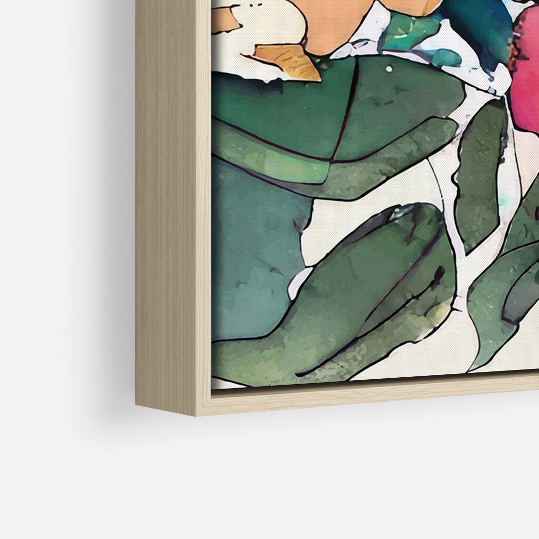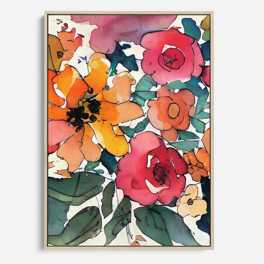 Obraz w ramie 80x120 - Kwiatowy Impuls Kolorów - abstrakcyjne kolorowe kwiaty, szkic - rama drewno