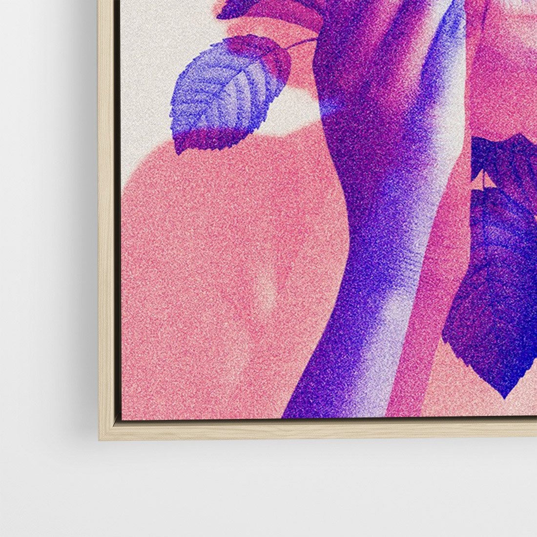 Ta grafika przedstawia abstrakcyjną różową postać kobiety z kwiatami we włosach. Kompozycja tworzy unikalny kolaż, który zachwyca subtelnym pięknem i artystycznym wdziękiem. To wyjątkowe dzieło sztuki nadaje przestrzeni nowoczesności i oryginalności, przyciągając wzrok swoją harmonią kolorów i abstrakcyjnymi formami.