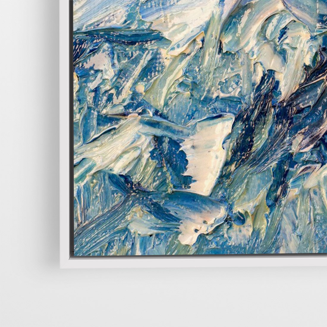 Obraz w ramie 80x120 - Majestat Błękitnych Szczytów - olejny obraz, górski pejzaż - rama biała