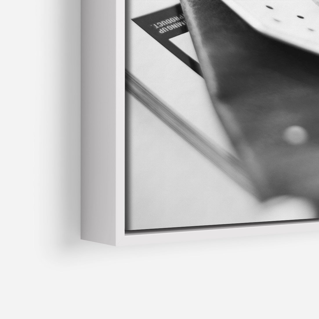 Obraz w ramie 80x120 - Makaroniki w Szarości - czarno biała fotografia, plakat - rama biała