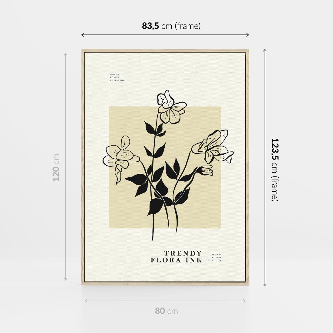 Piękne kwiaty w połączeniu z elegancką typografią tworzą minimalistyczną sztukę. Delikatny beżowy akcent dodaje subtelności całej kompozycji. To obraz, który wprowadzi do Twojego wnętrza przyjemny akcent roślinności, zachowując jednocześnie estetykę minimalizmu.