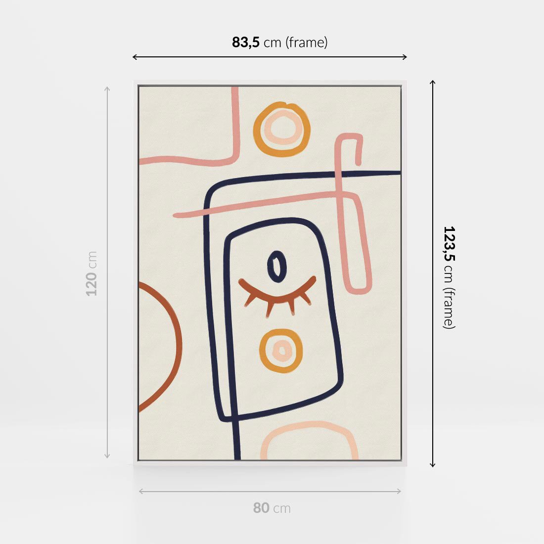 Obraz w ramie 80x120 - Manifestacje Dziwności - abstrakcja w stylu picasso, beżowe tło - rama biała