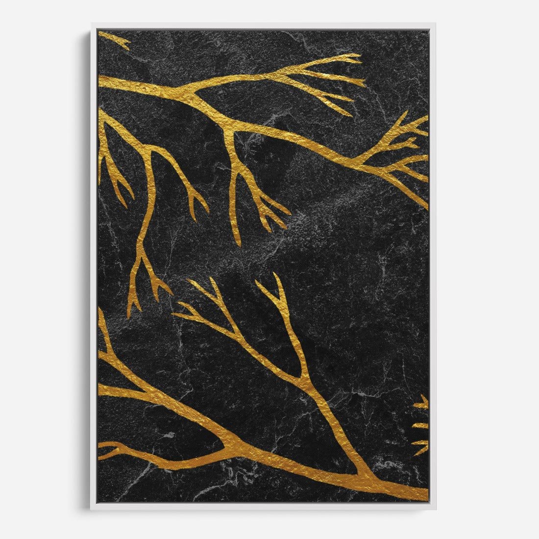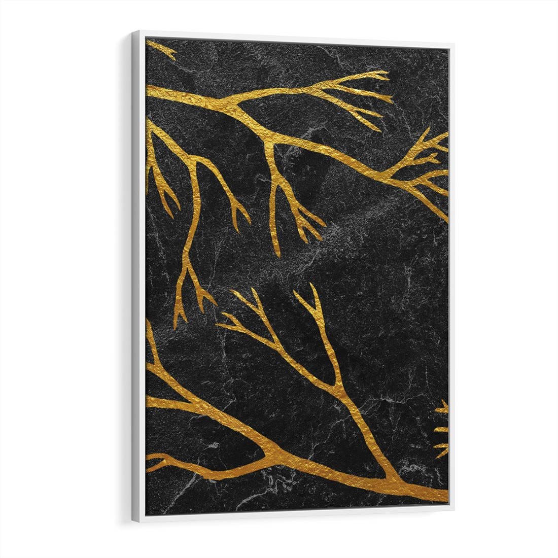 Obraz w ramie 80x120 - Marmurowe Drzewa Snu - złote gałęzie, drzewa - rama biała