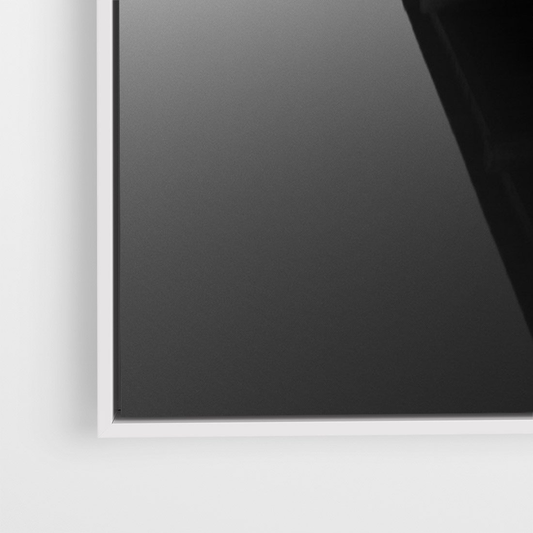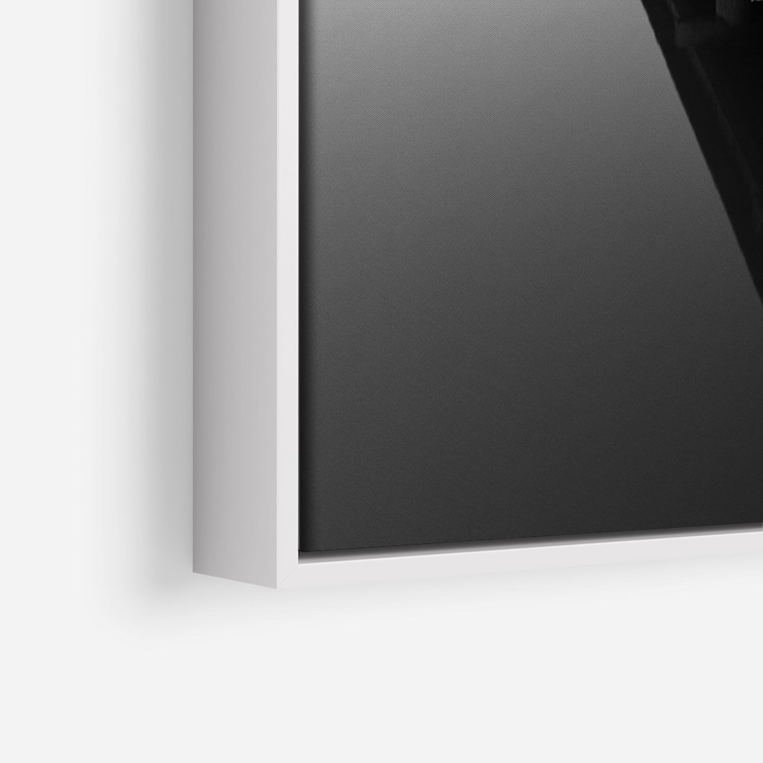 Obraz w ramie 80x120 - Mglista Perspektywa - czarno biała fotografia, drewniany pomost na jeziorze - rama biała
