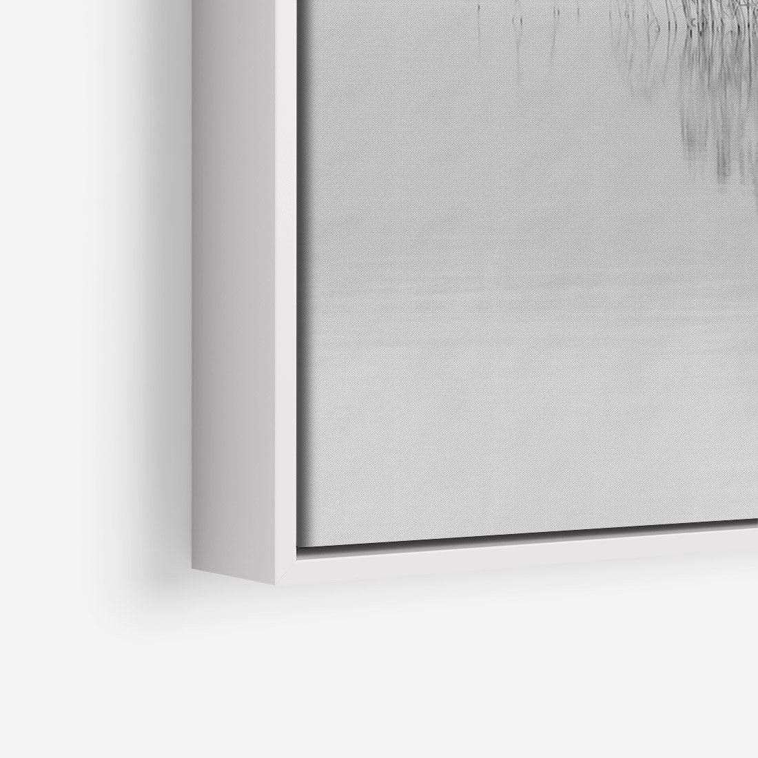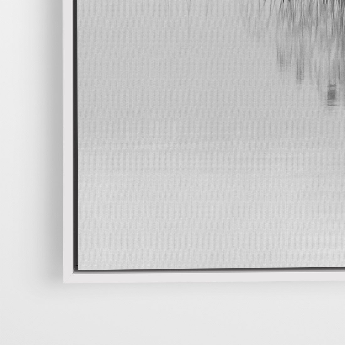 Obraz w ramie 80x120 - Mglisty Brzeg Jeziora - czarno białe zdjęcie, zamglone jezioro - rama biała