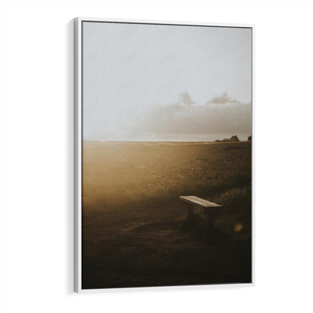 - Obraz w ramie 80x120 - Mglisty zachód słońca na ławeczce