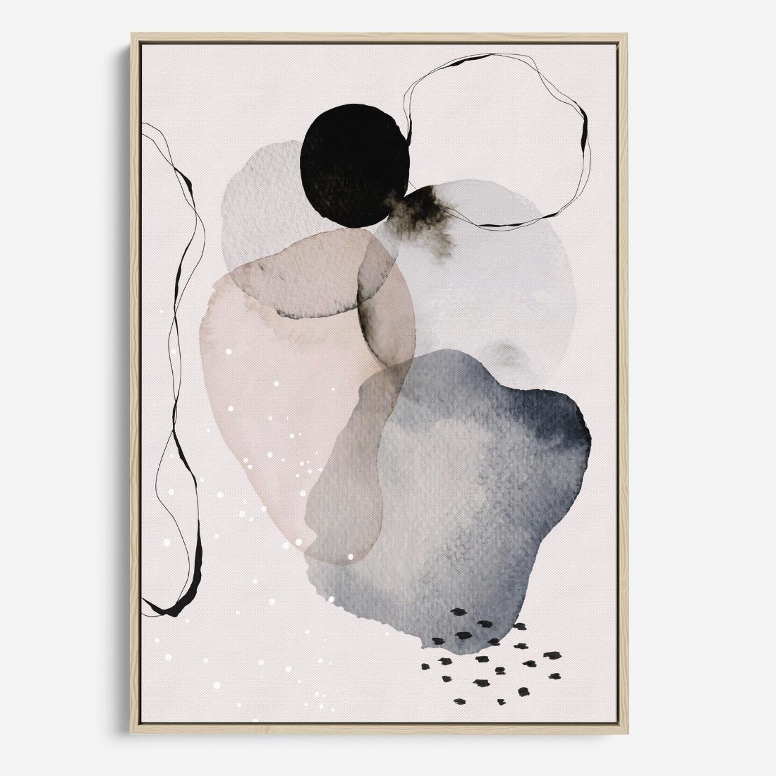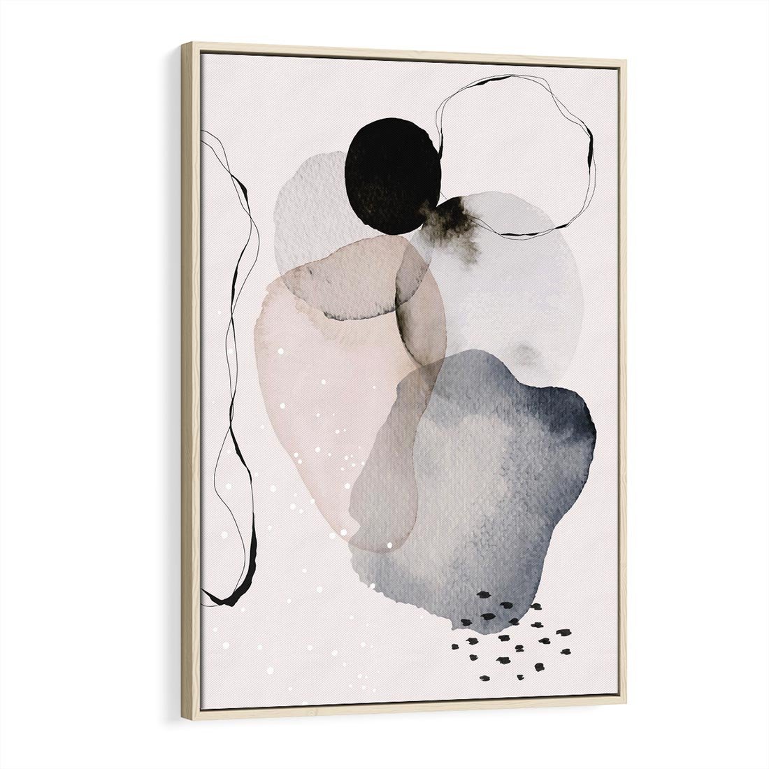 Obraz w ramie 80x120 - Migocące Barwy - abstrakcyjne plamy akwarelowe, czarny szkic - rama drewno