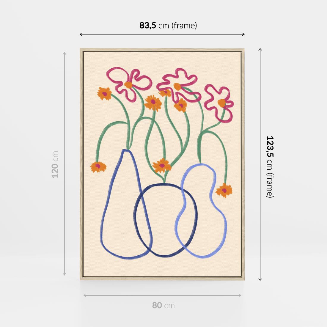Ten minimalistyczny abstrakcyjny obraz prezentuje prymitywne kwiatki za pomocą delikatnych, kolorowych linii. Kompozycja jest subtelna, a jednocześnie pełna wyrazu, tworząc unikalne połączenie prostoty i artystycznego wyrazu. To idealny dodatek do nowoczesnych wnętrz, dodający im charakteru i oryginalności.
