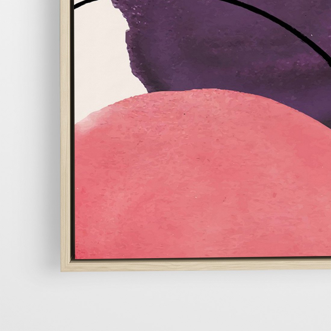 Ten obraz ukazuje abstrakcyjne akwarelowe plamy, nieregularne linie i dynamiczną kompozycję, tworząc piękny chaos w odcieniach fioletu i różu.