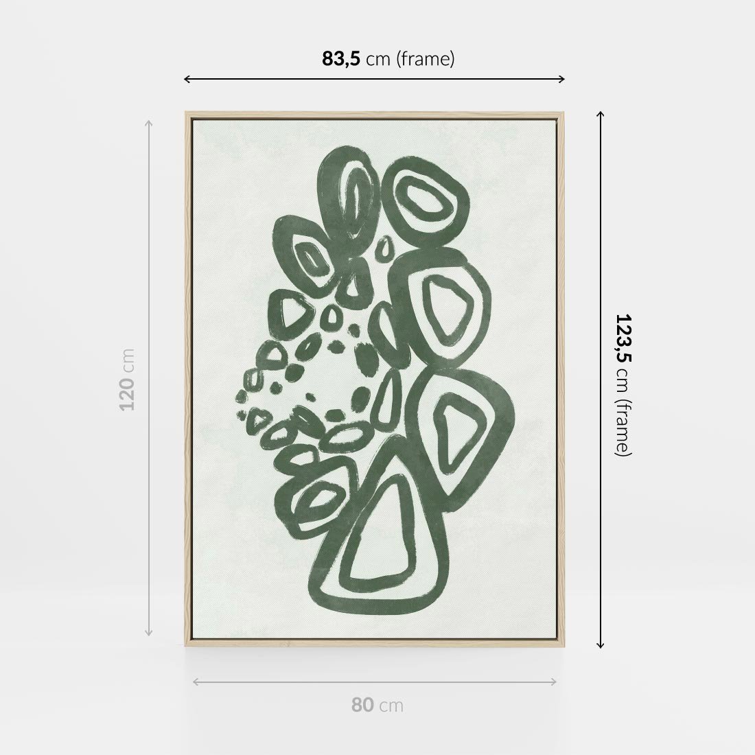 Zielona abstrakcja o zgaszonej zielonej kolorystyce to idealny dodatek do skandynawskiego designu. Ten minimalistyczny plakat o subtelnym wyglądzie wkomponuje się doskonale w przestrzeń, nadając jej spokój i naturalny urok.