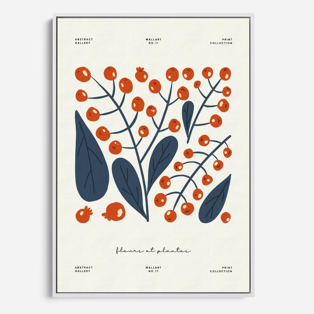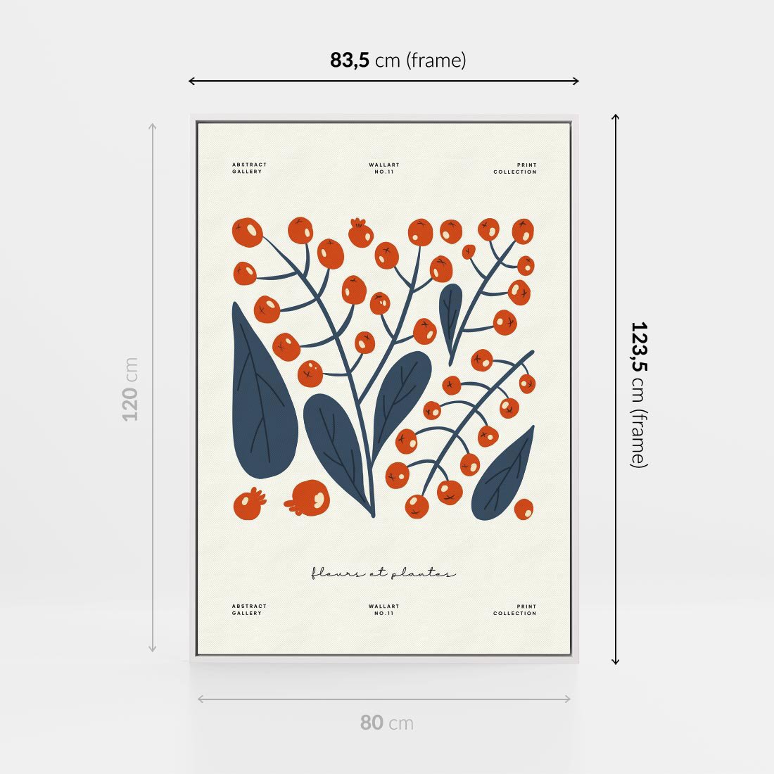 Obraz w ramie 80x120 - Minimalistyczna Uroda Jarzębin - jarzębiny, niebieskie liście - rama biała