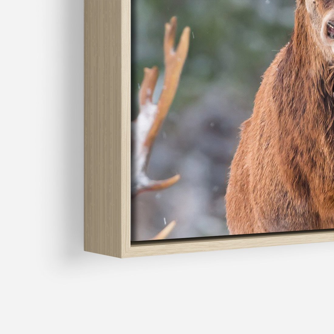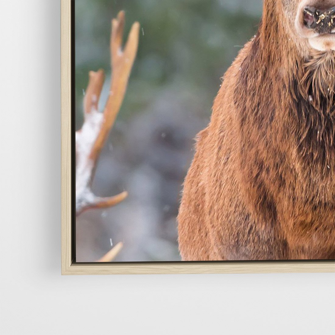 Obraz w ramie 80x120 - Monarcha Zimowej Dziczy - jeleń, zima - rama drewno
