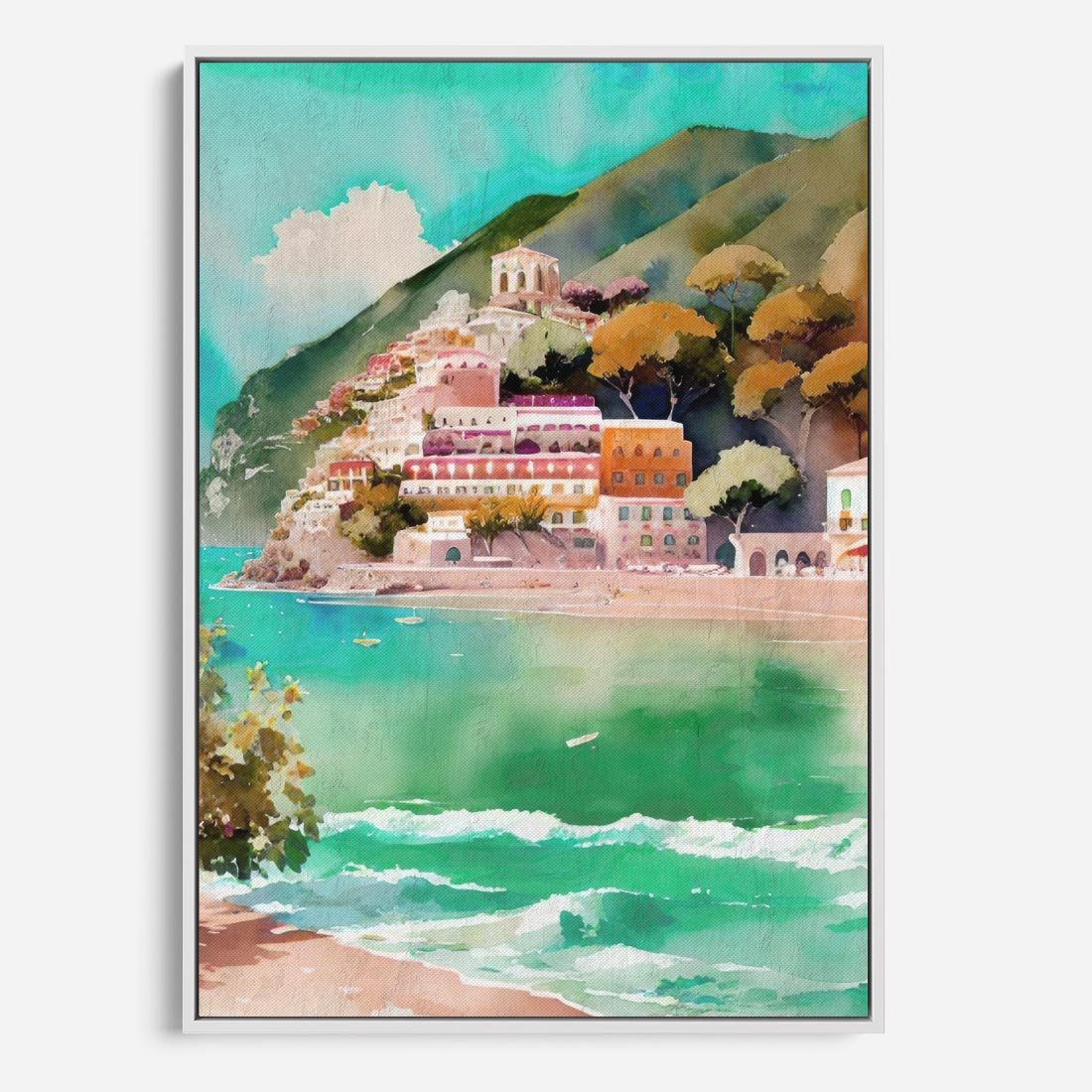 Obraz w ramie 80x120 - Na Zboczu - akwarela, nadmorski pejzaż - rama biała