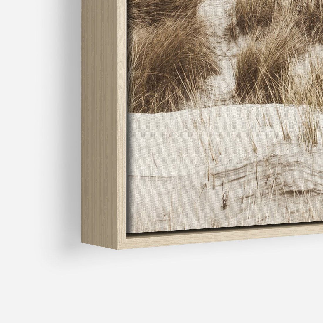 Obraz w ramie 80x120 - Nadmorskie Wydmy - fotografia, kolory sepii - rama drewno