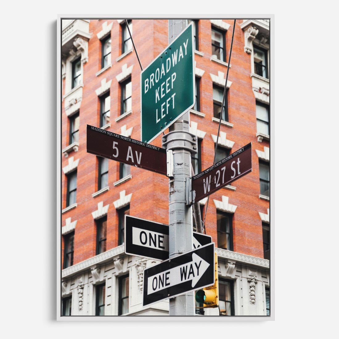 Obraz w ramie 80x120 - Namiastka wielkiego miasta - Nowy Jork, drogowskaz - rama biała