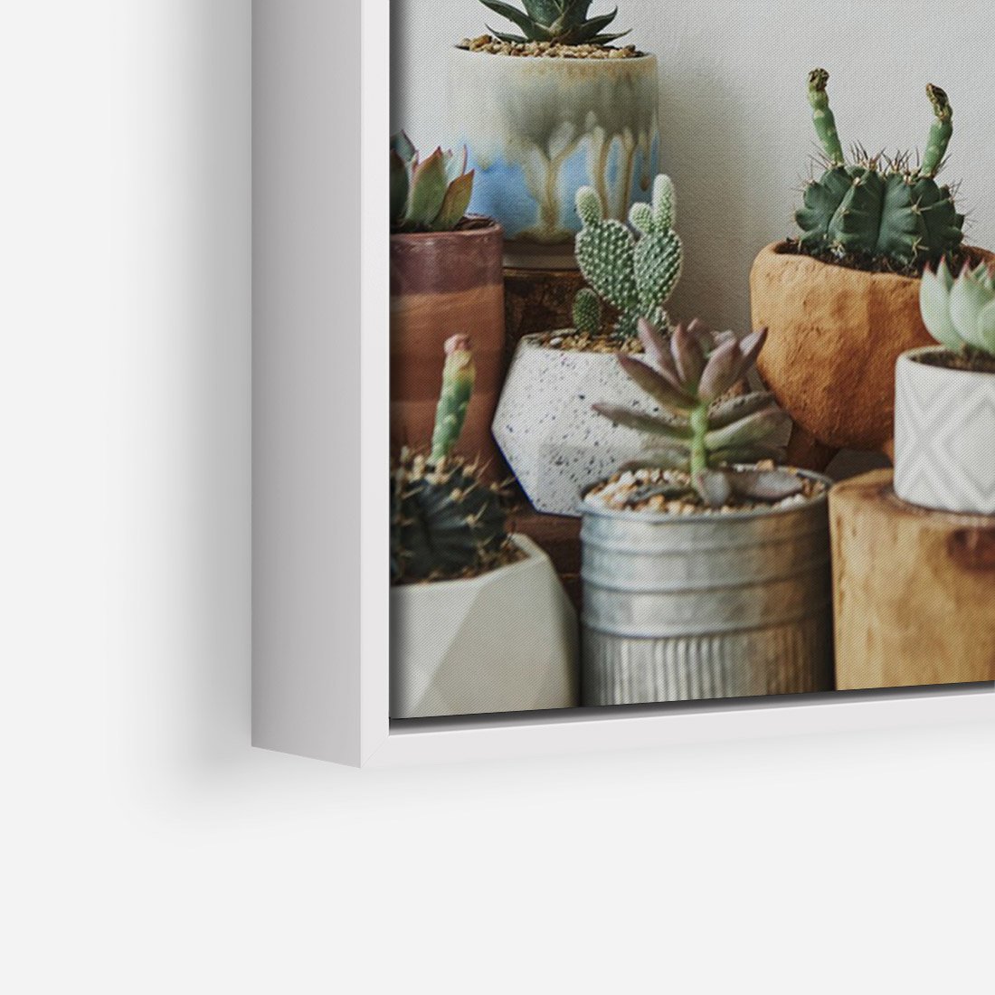 Obraz w ramie 80x120 - Naturalna Harmonia - kaktusy, liście - rama biała