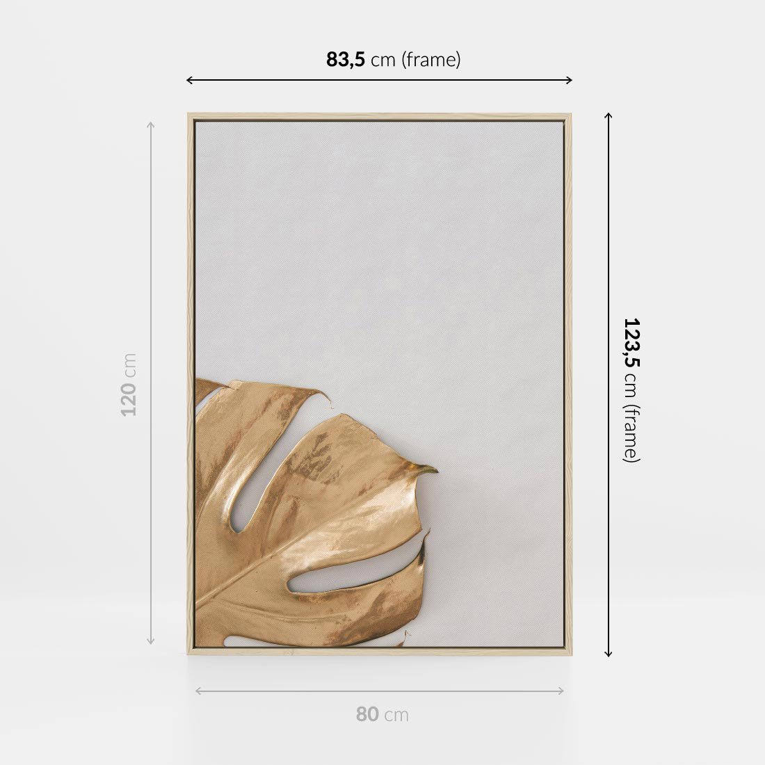 Obraz w ramie 80x120 - Natury Szlachetność - złote, liście - rama drewno