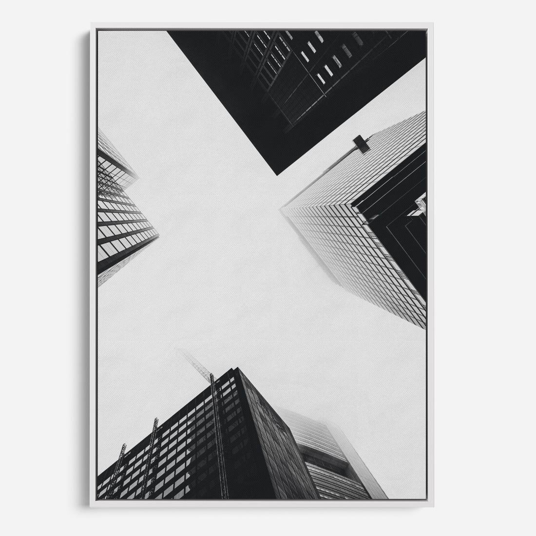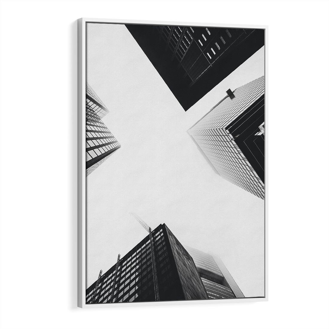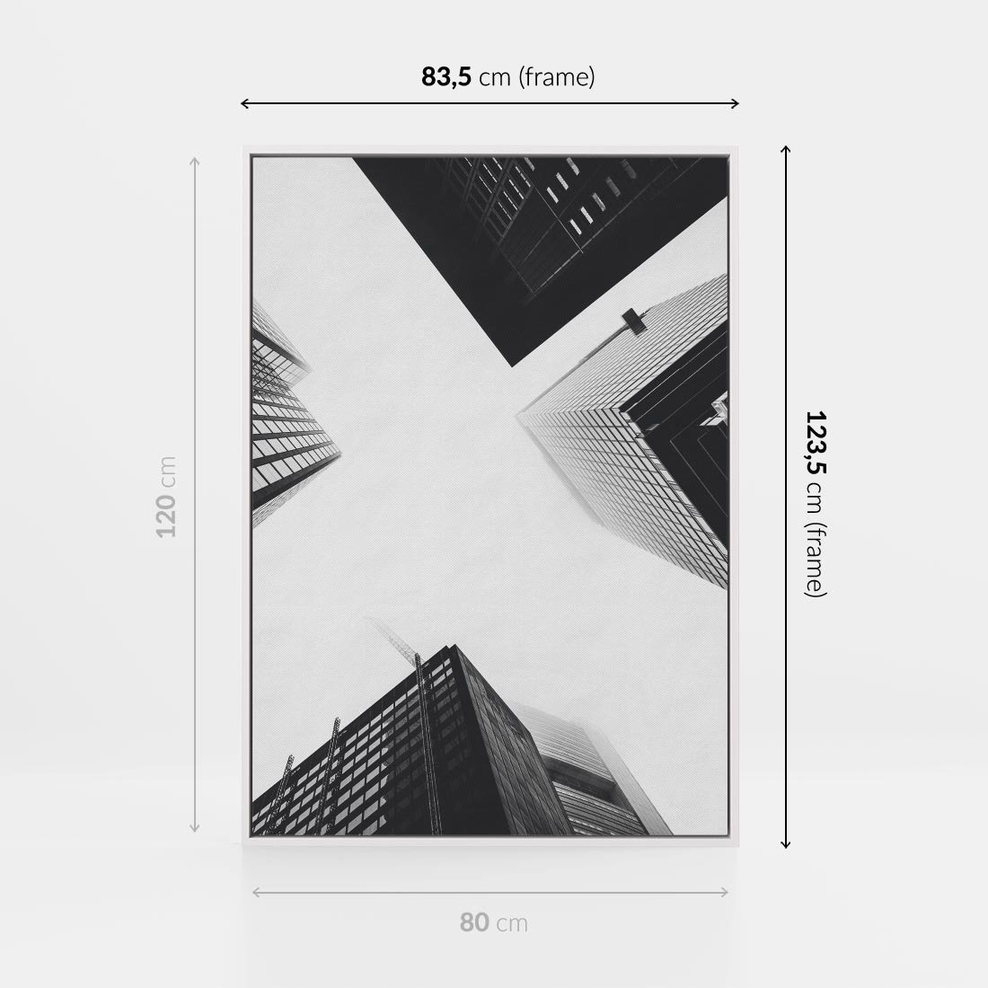 Obraz w ramie 80x120 - Nowoczesna Dynamika - perspektywa, wieżowce - rama biała