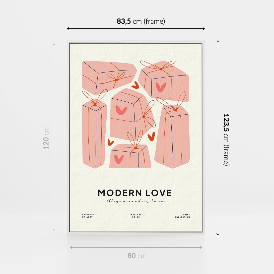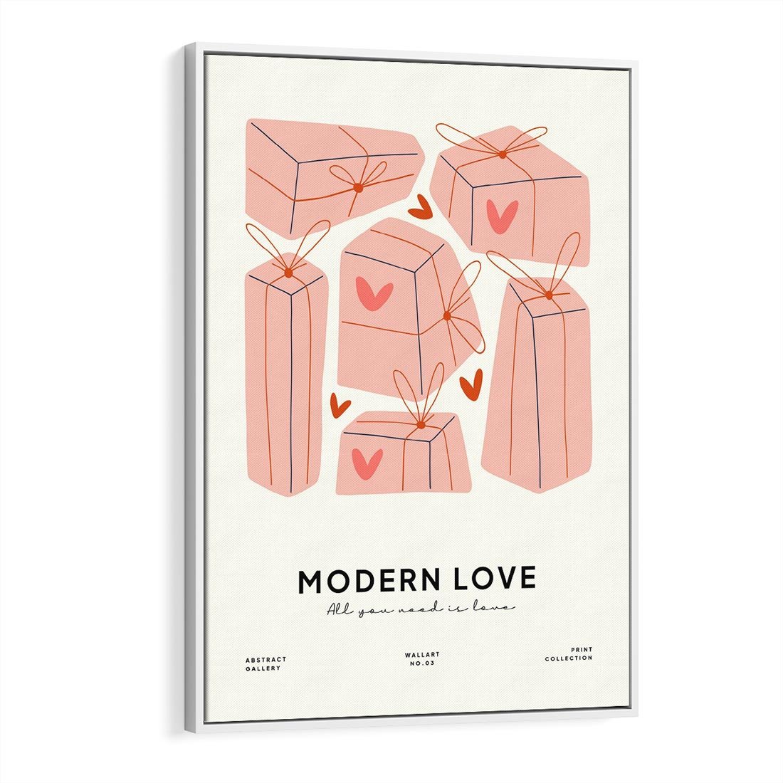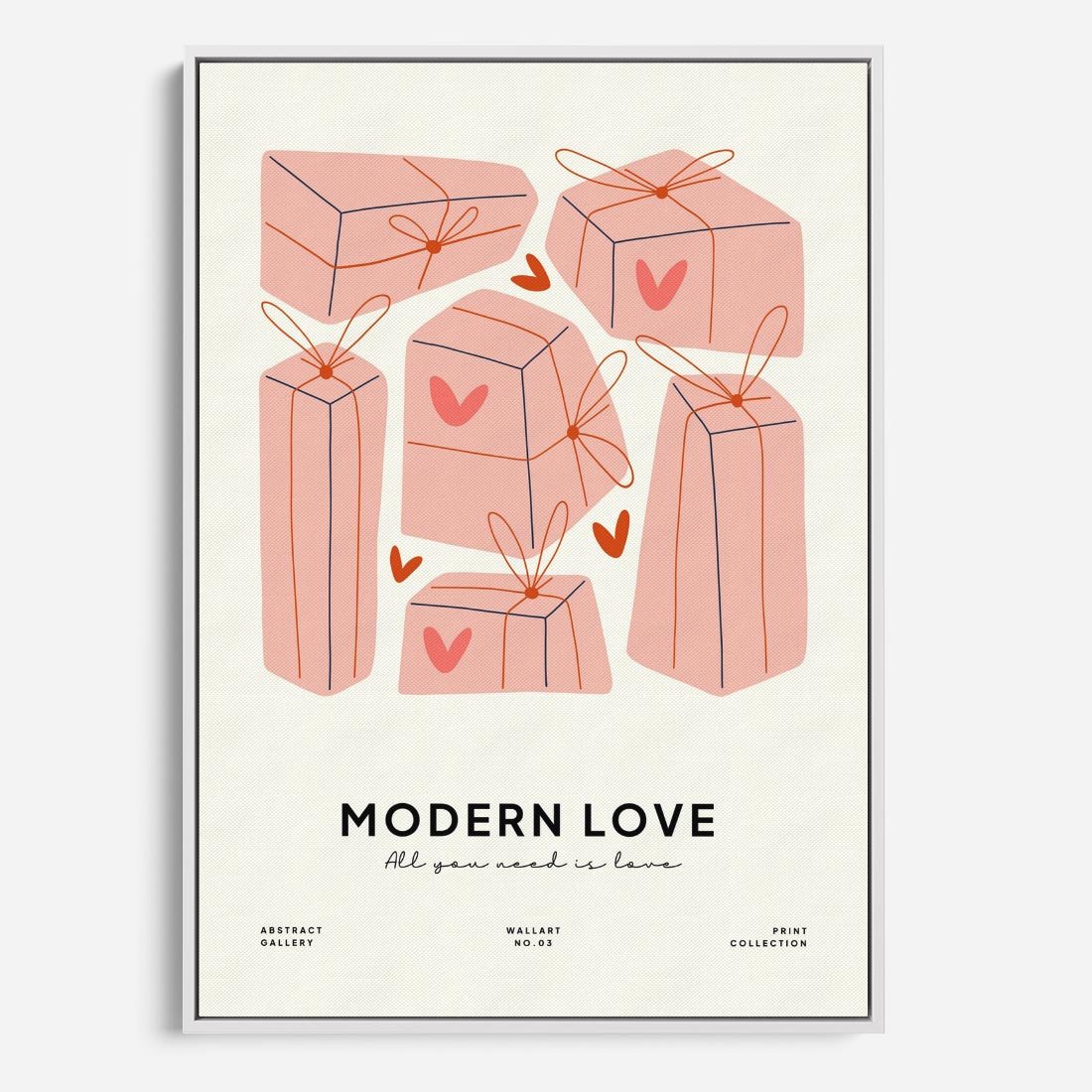Ta nowoczesna grafika w pastelowych odcieniach ukazuje serduszka i prezenty, tworząc dynamiczną kompozycję. Nowoczesna Miłość to hołd dla uczucia w stylu współczesnym, z subtelną typografią Modern Love. Obraz ten wniesie do wnętrza dawkę radości i romantyzmu, jednocześnie podkreślając nowoczesny charakter miłości.