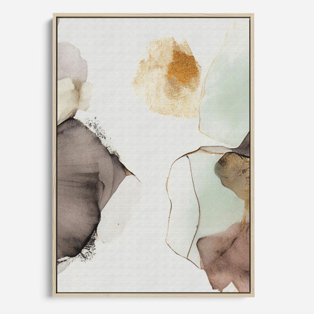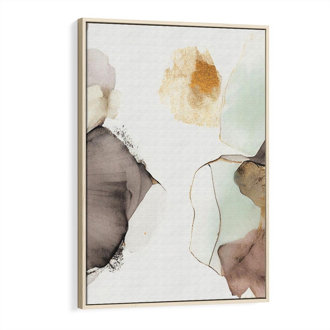 Obraz w ramie 80x120 - Nowoczesne Elegancje - akwarela, złote linie i plamy - rama drewno