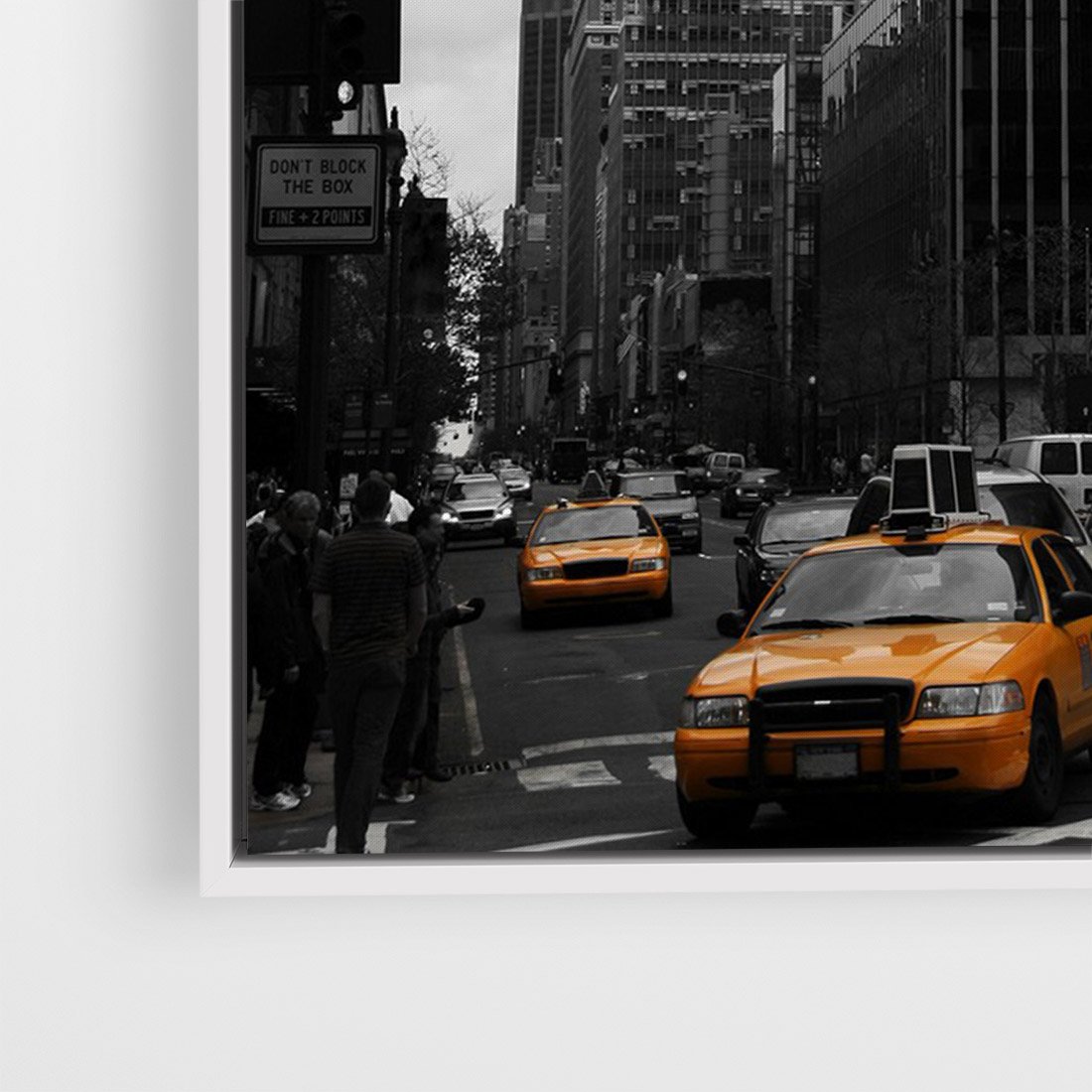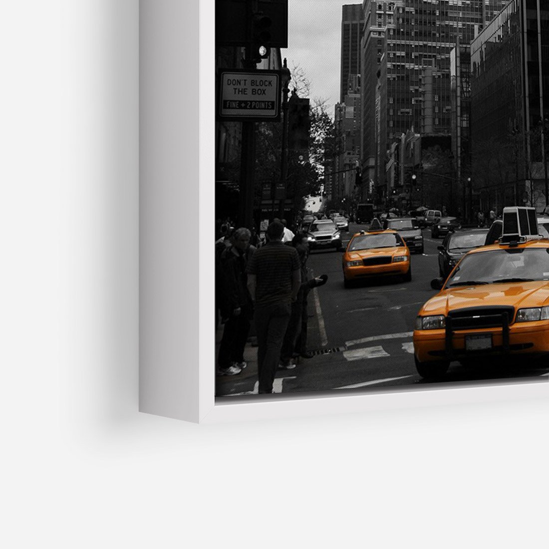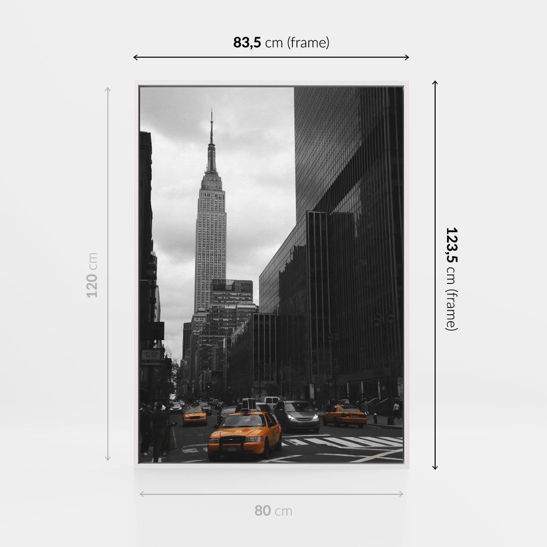 Obraz w ramie 80x120 - Nowy York, taksówka w ruchu - Nowy York, taksówka - rama biała