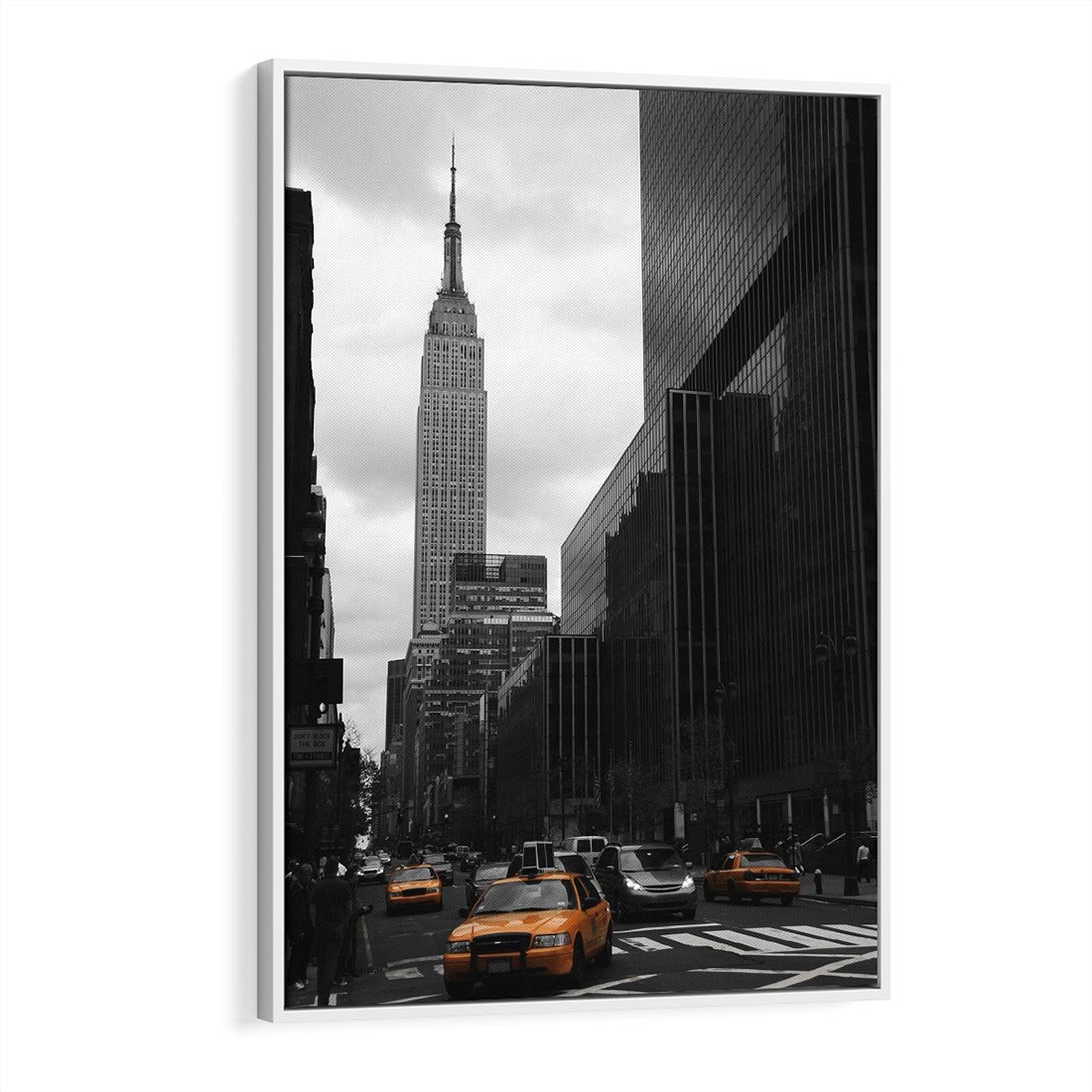 Ten dynamiczny obraz na płótnie przenosi nas do Nowego Jorku, ukazując pełne energii miasto i poruszającą się taksówkę na tle charakterystycznej panoramy.