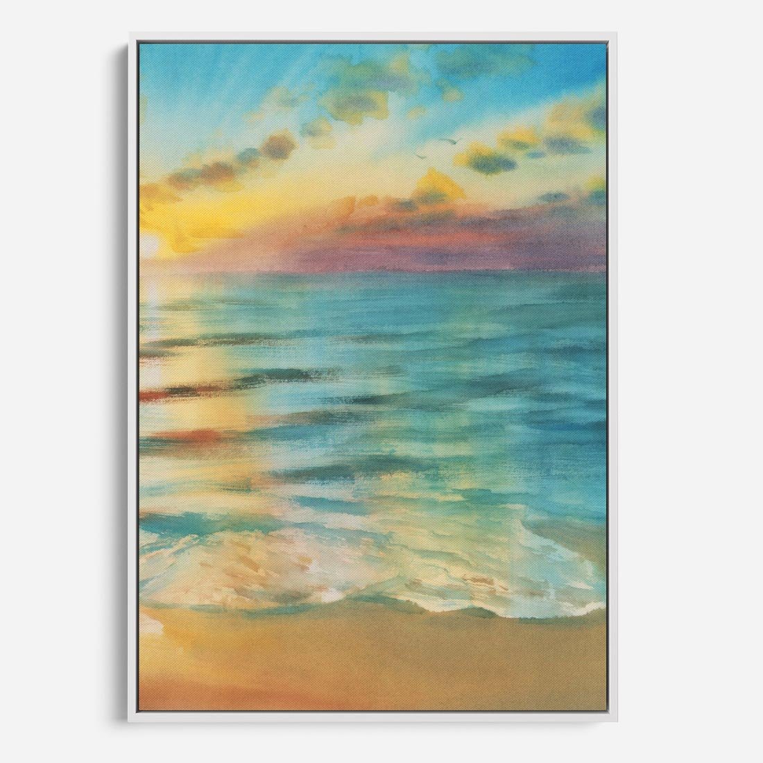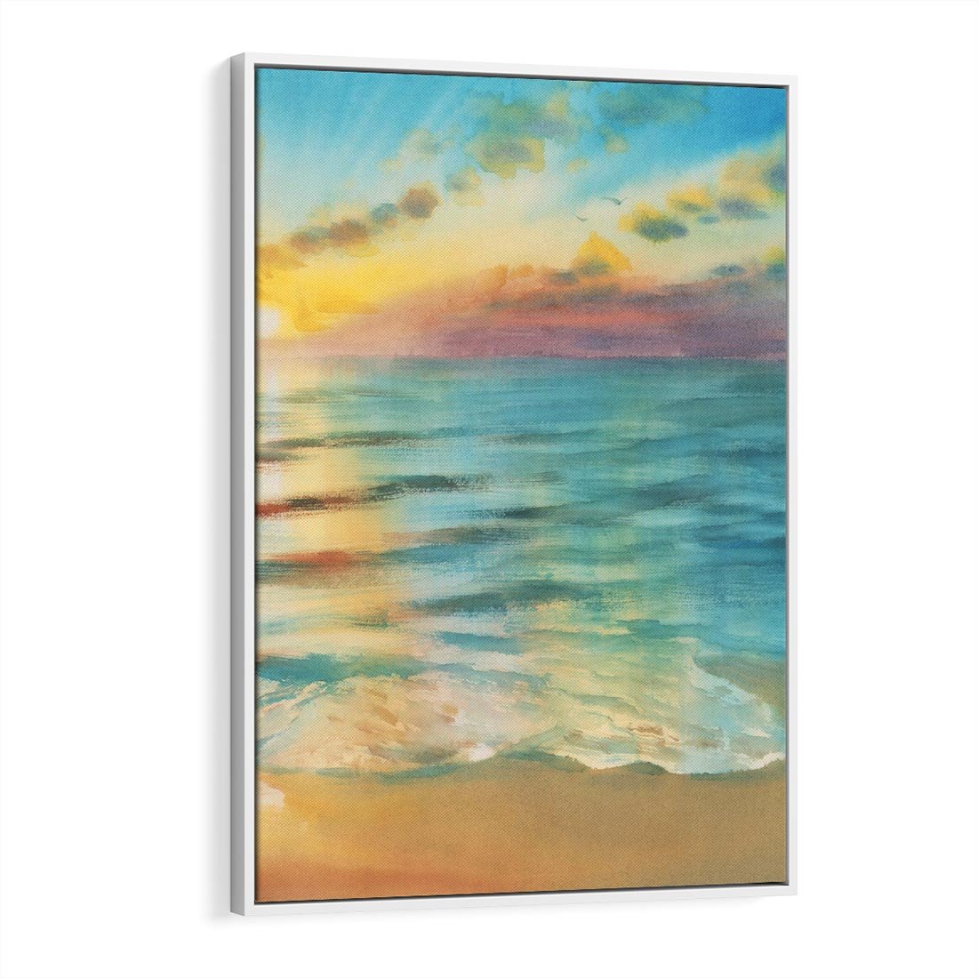 Obraz w ramie 80x120 - Objawienie Fioletowego Świtu - fioletowy wschód słońca, słońce wschodzi nad morzem - rama biała