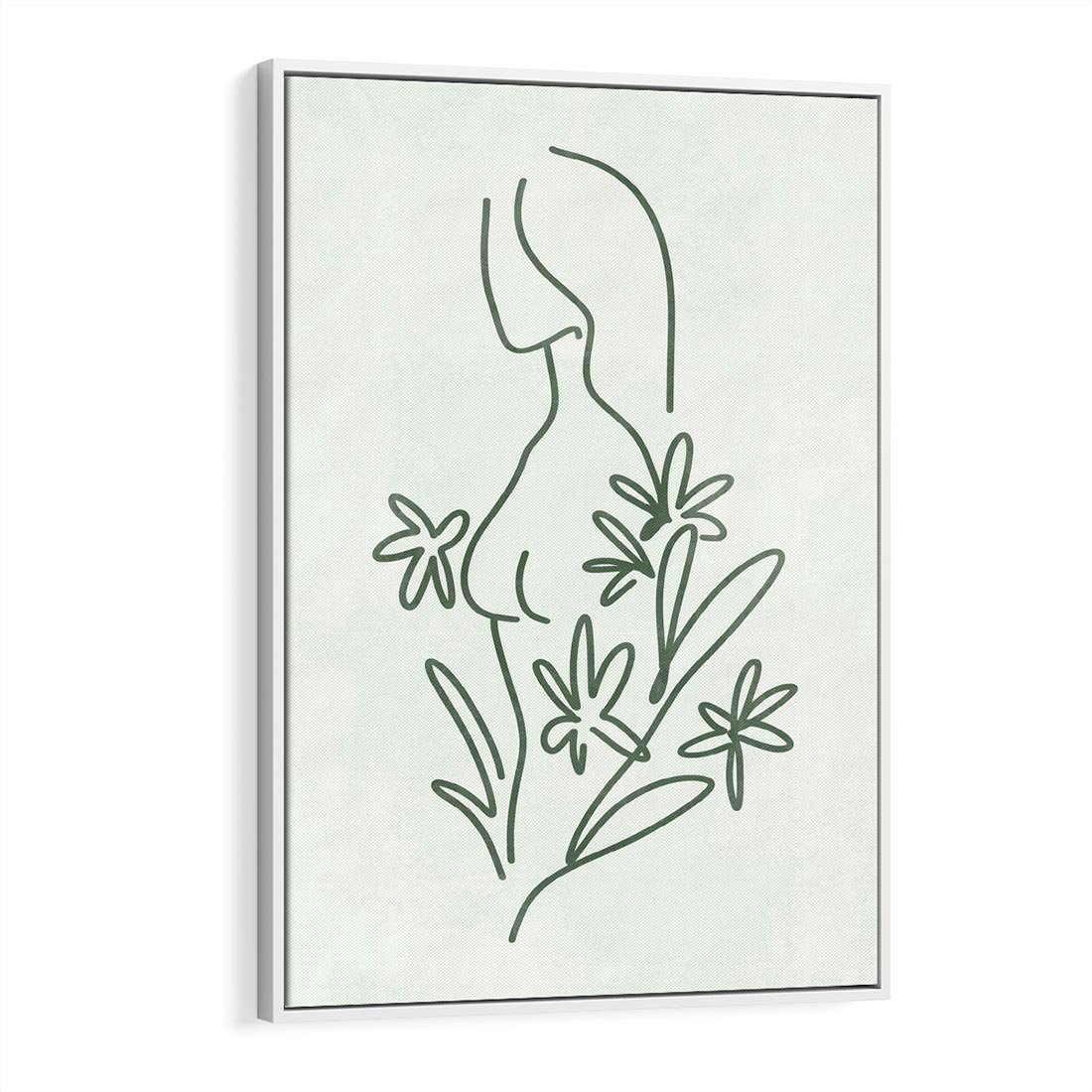 Abstrakcyjny obraz w głębokim odcieniu zieleni, inspirowany naturą. Delikatne, roślinne formy wprowadzają wyciszenie, idealny dodatek do minimalistycznych wnętrz.