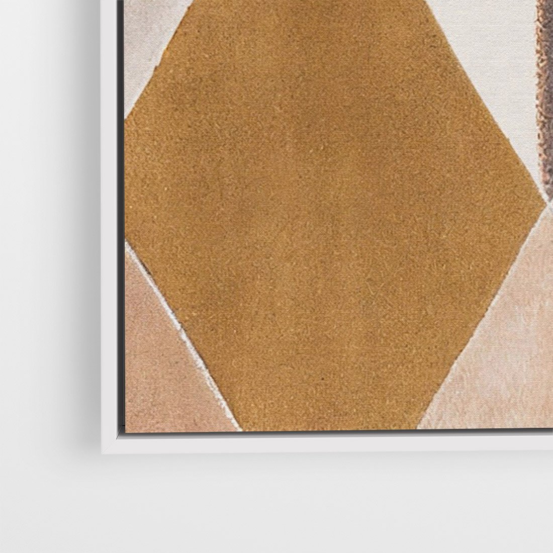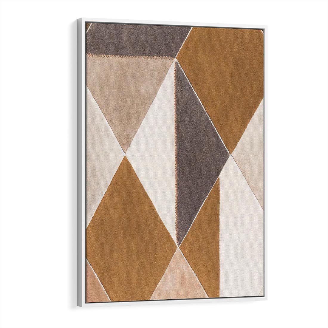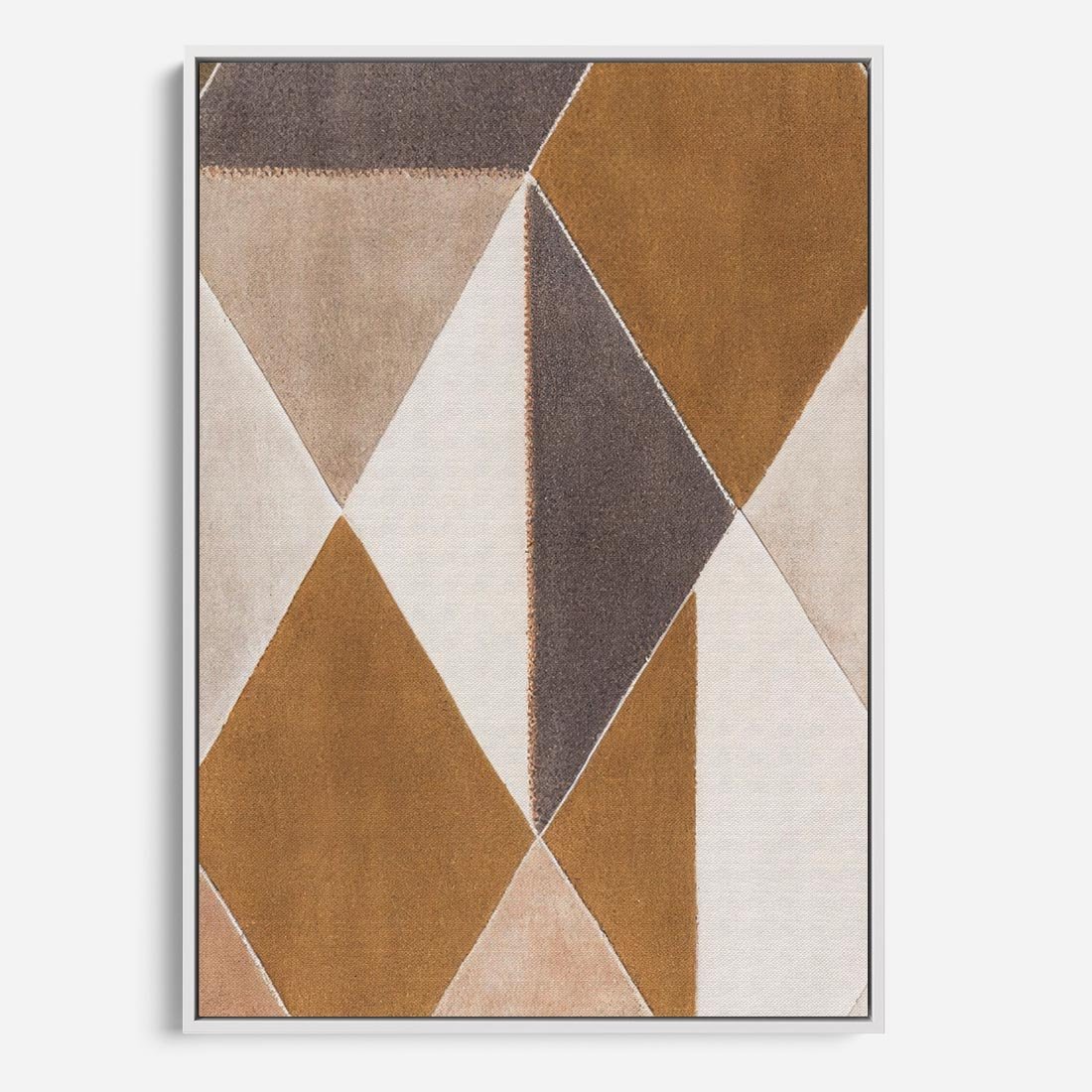 Obraz w ramie 80x120 - Odblaski niespełnionych marzeń - kompozycja z trójkątów, mix kolorów ziemi - rama biała