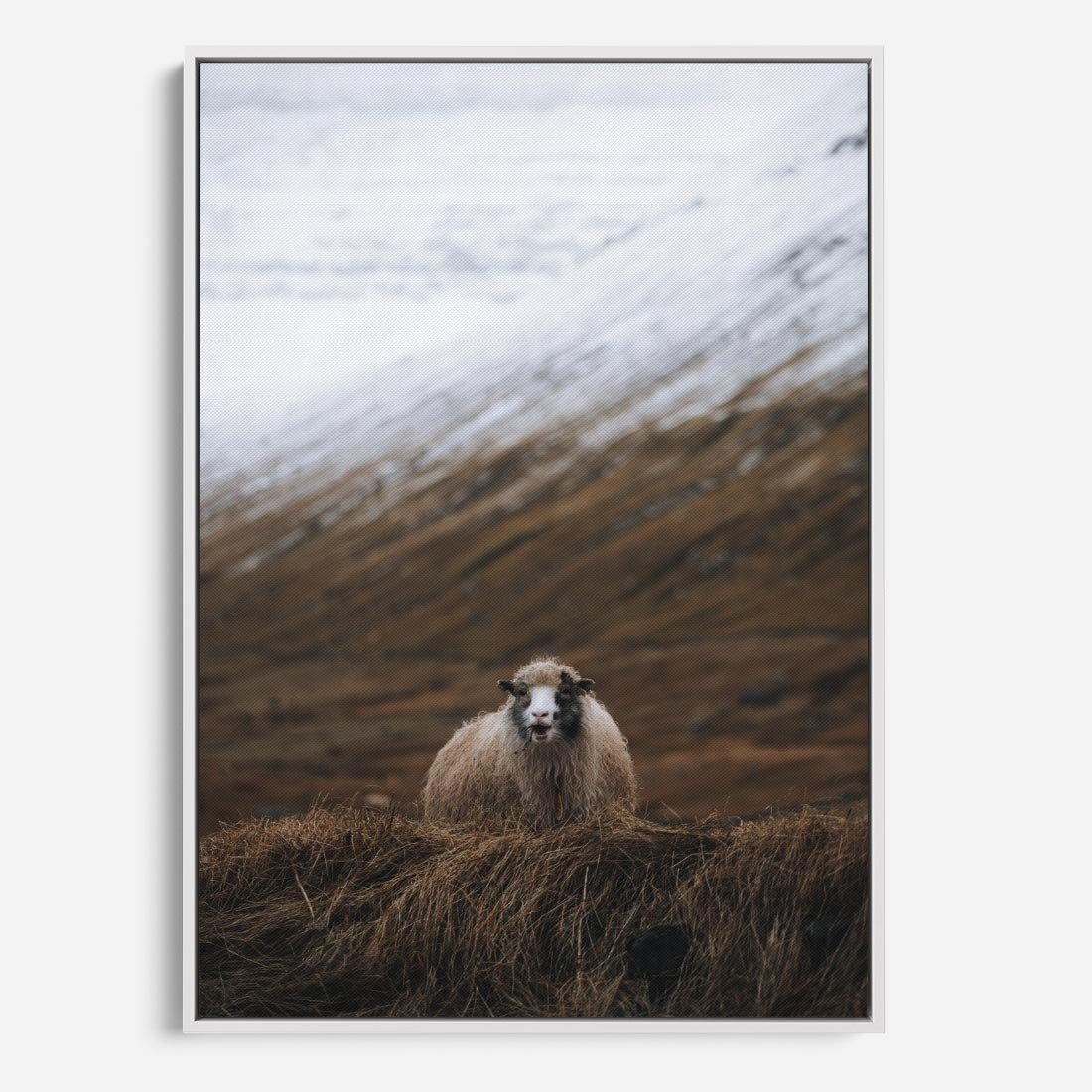 Obraz w ramie 80x120 - Owiecka panorama - góry, owca - rama biała