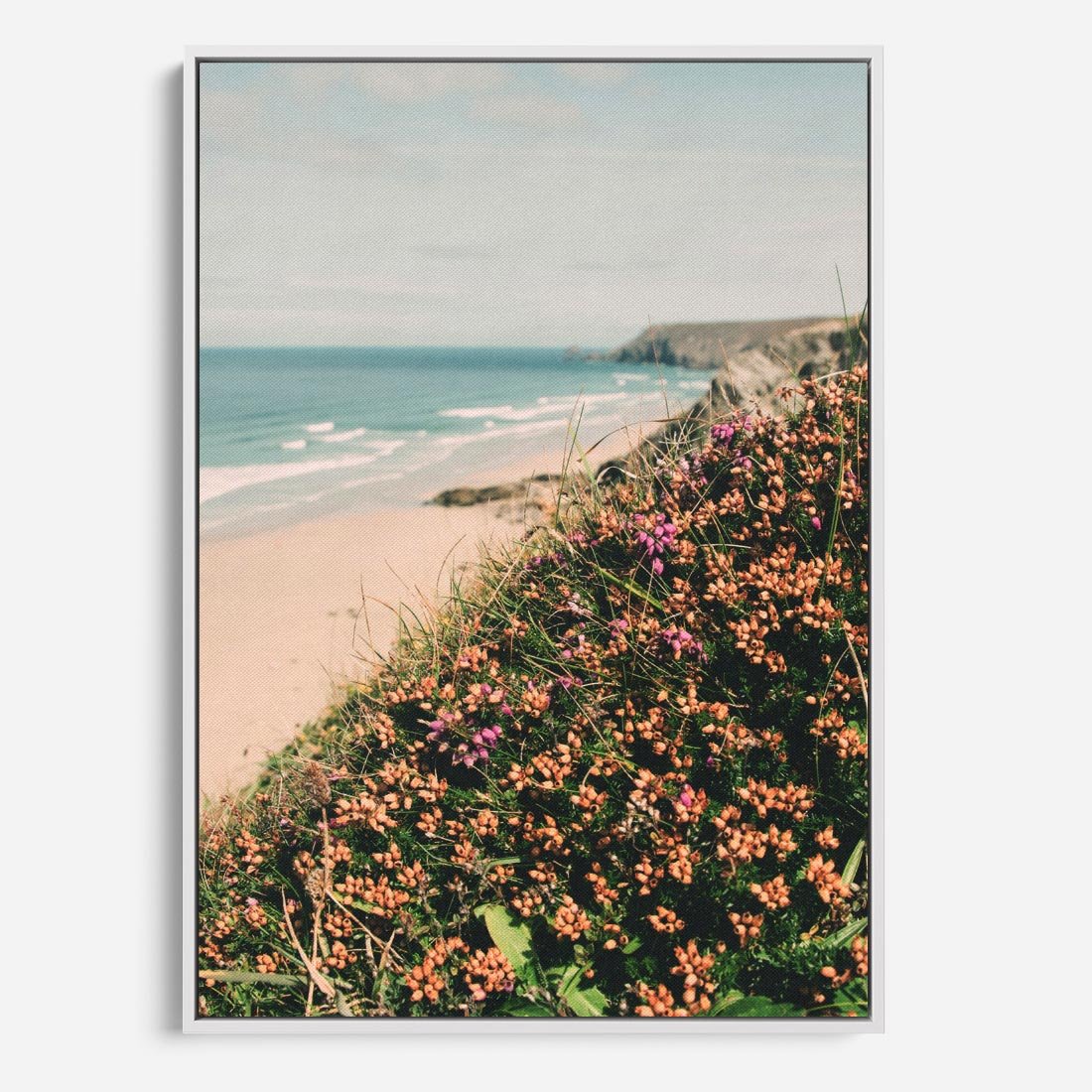 Odkryj magiczną atmosferę nadmorskich wakacji dzięki tej uroczej fotografii. Perspektywa klifu porośniętego różowymi kwiatami, rozciągającego się w kierunku oceanu i plaży, przeniesie Cię w świat spokoju i piękna natury. To idealny akcent dla tych, którzy pragną poczuć morską bryzę i magię egzotycznej przygody.