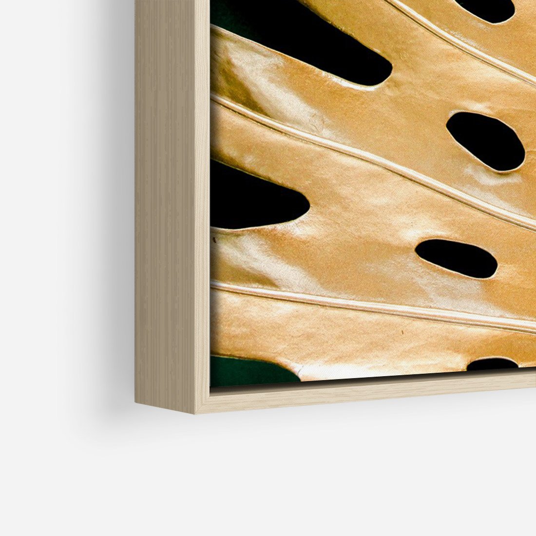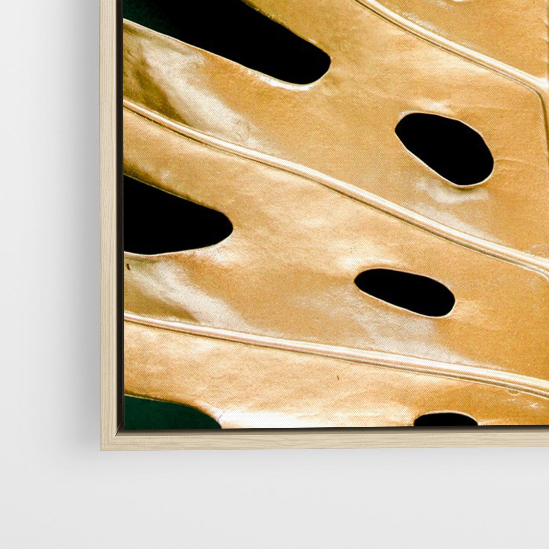 Odkryj piękno i styl złotych liści monstera na obrazie. Dodaj swojemu wnętrzu wyjątkowego uroku i odczuj elegancję, która emanuje z tej minimalistycznej kompozycji.