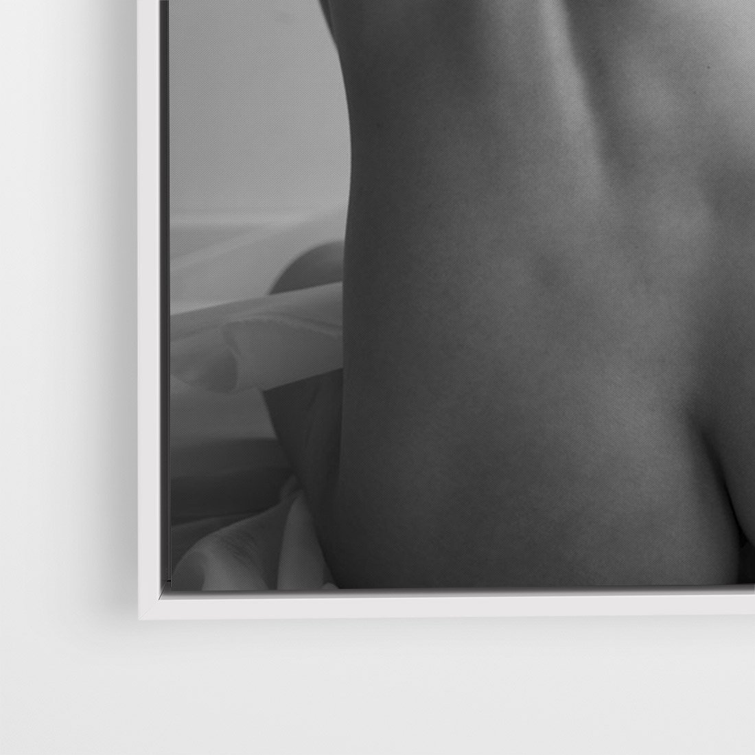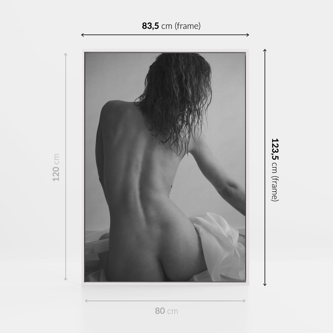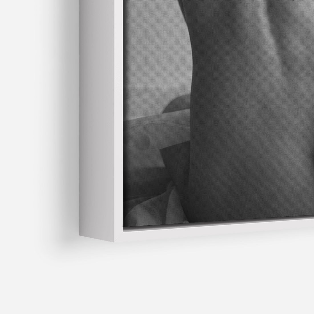Obraz w ramie 80x120 - Piękno o Poranku - czarno biała fotografia, akt kobiecy - rama biała