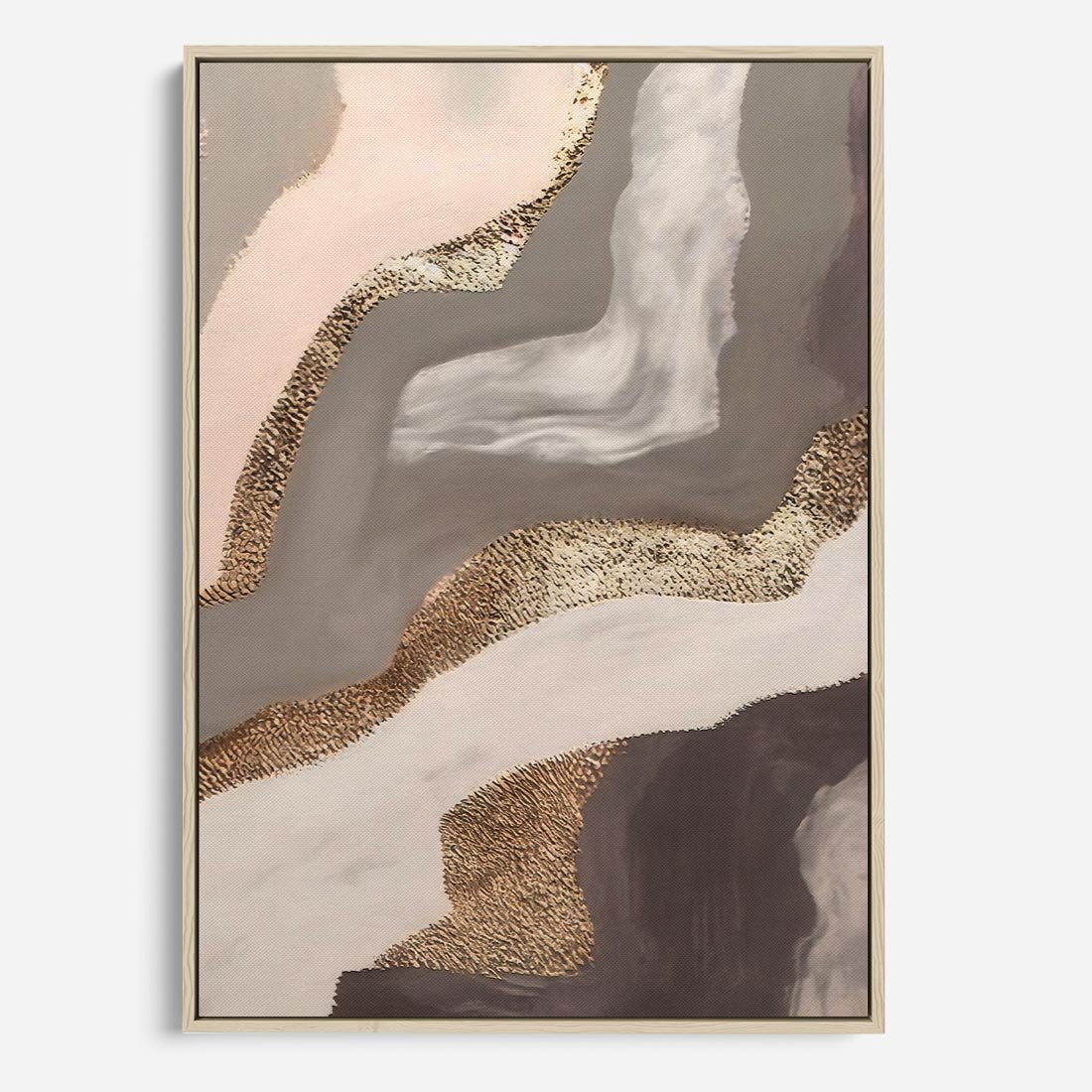 Obraz w ramie 80x120 - Płynne Fale - abstrakcja, neutralne kolory - rama drewno