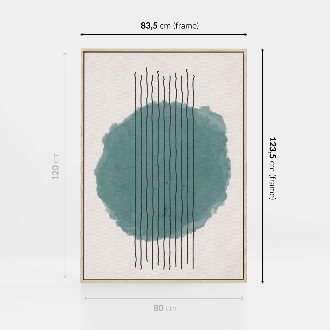 Obraz w ramie 80x120 - Podróżne Inspiracje - abstrakcyjna akwarelowa plama, nieregularne kreski - rama drewno