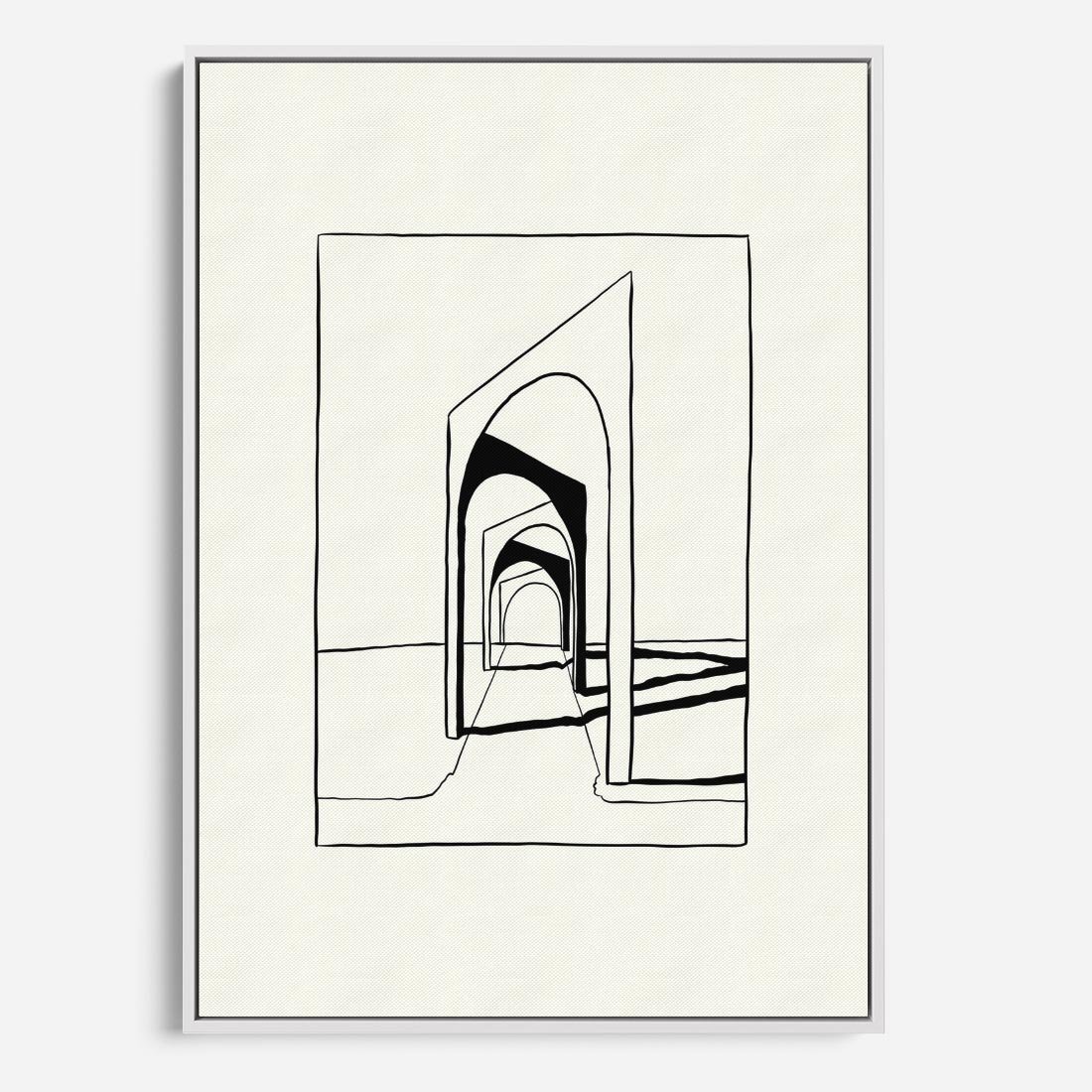 Ta nowoczesna sztuka kieruje uwagę na minimalistyczną piękno architektury, wykorzystując kontrastujące odcienie czerni i bieli. Geometryczne formy ożywają, tworząc kompozycję o wyraźnym i wyjątkowym charakterze.