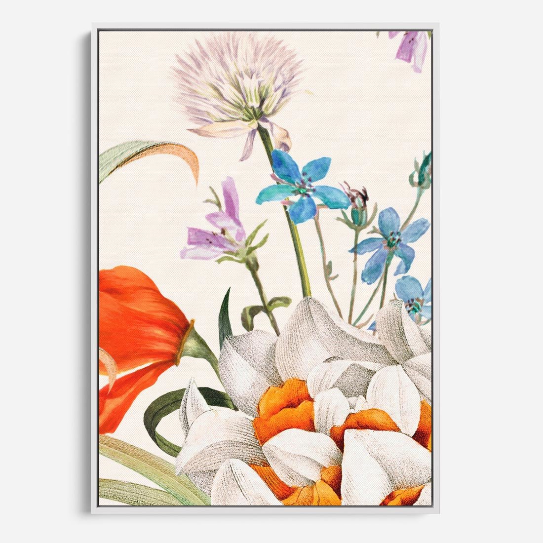 Obraz w ramie 80x120 - Polne Kwiaty - polne kwiaty, na białym tle - rama biała