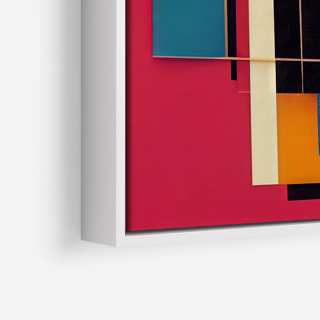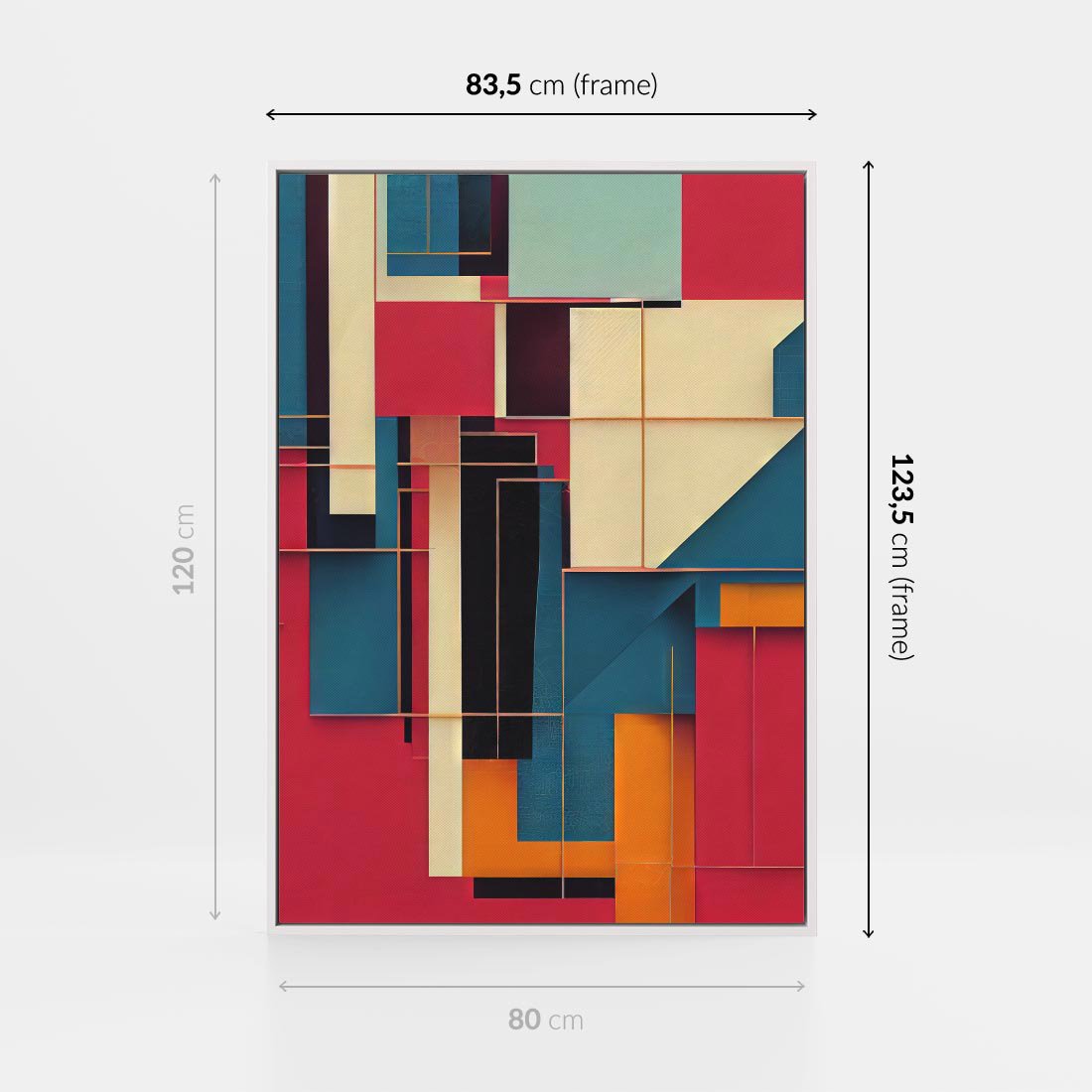 Obraz w ramie 80x120 - Przejście przez labirynt myśli - kolorowa abstrakcja, instalacja z prostokątów i lini - rama biała