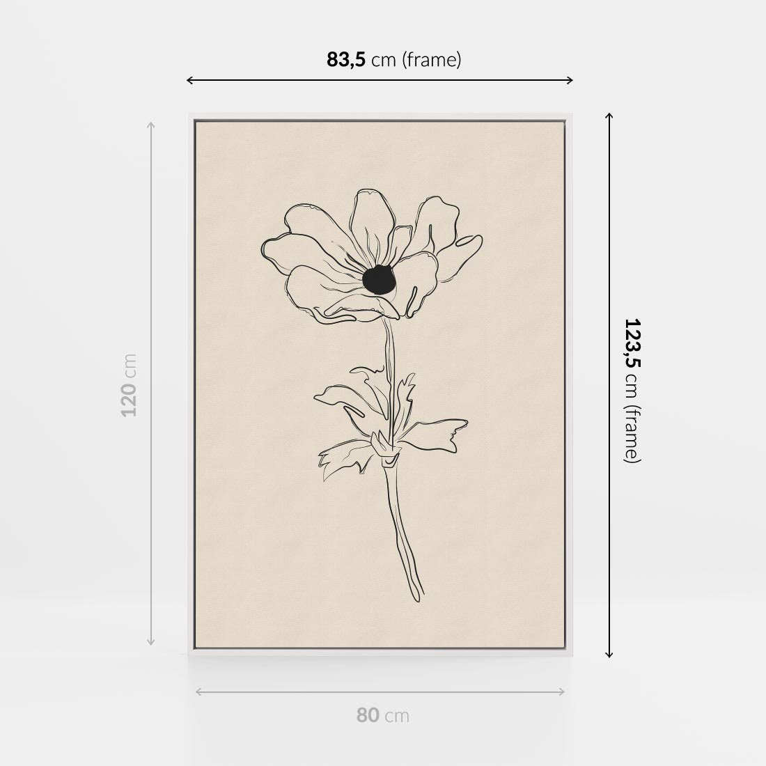 Obraz w ramie 80x120 - Przenikający Dialog - szkic kwiatu, mnimalistyczny szkic - rama biała