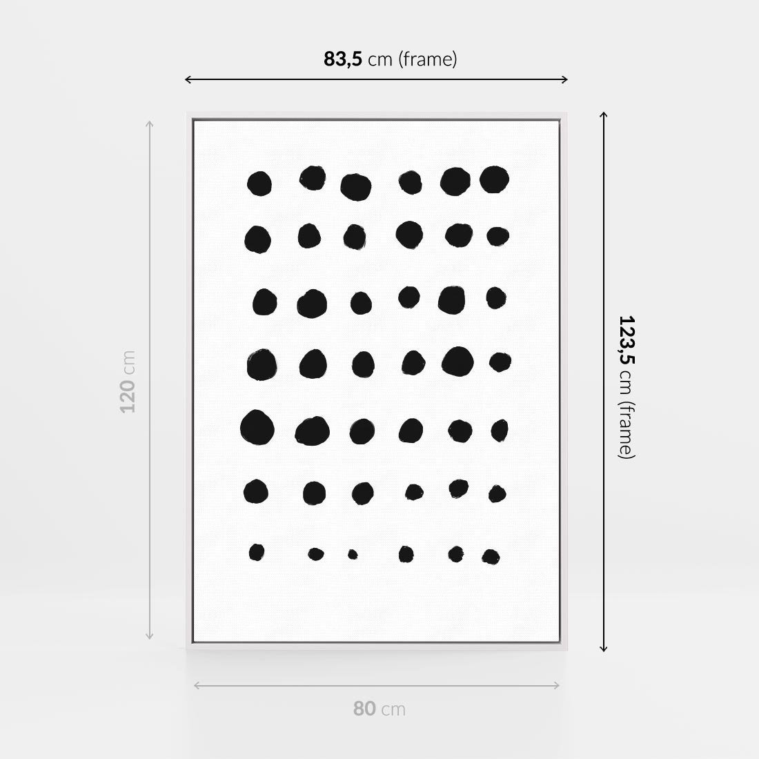 Obraz w ramie 80x120 - Refleksje Światła - minimalistyczna kompozycja, czarne kropkina białym tle - rama biała