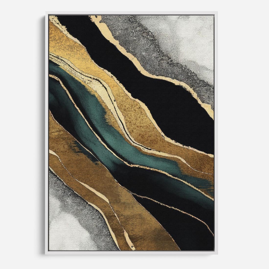 Obraz w ramie 80x120 - Refrakcje płynącej rzeczywistości - jak marmurowa rzeka, linie złota - rama biała
