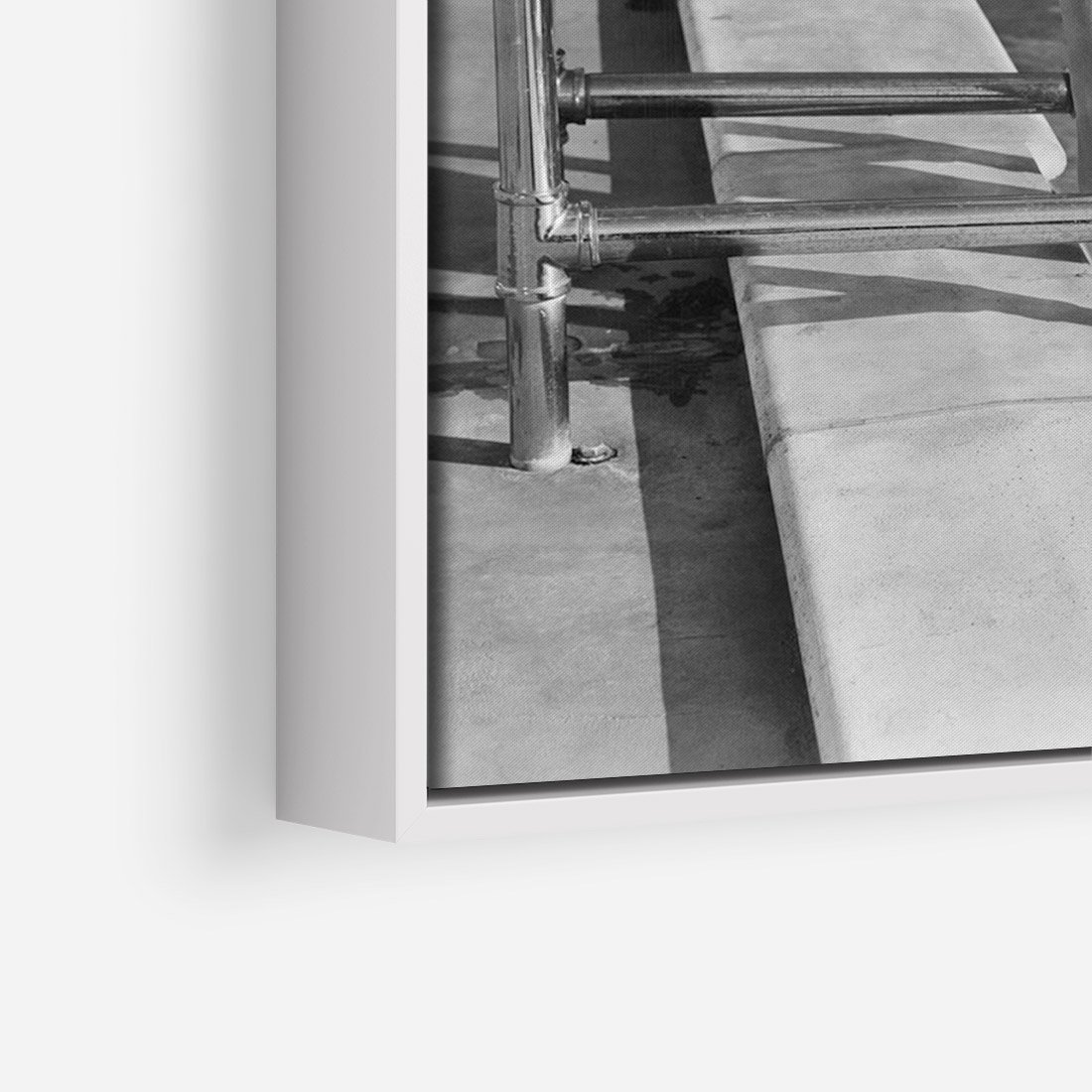 Obraz w ramie 80x120 - Retro Basen - retro zdjęcie, czarno białe - rama biała