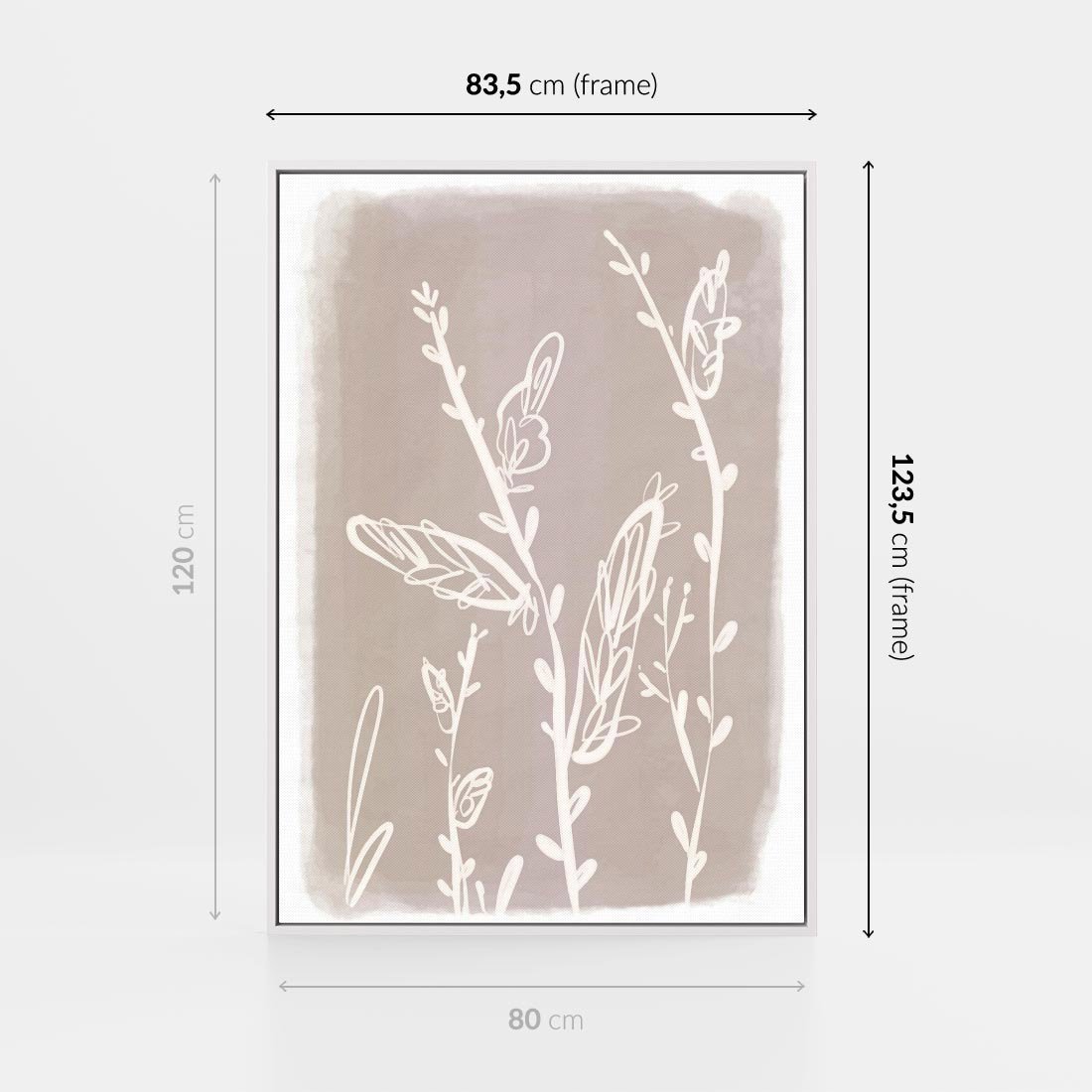 Obraz w ramie 80x120 - Roślinne Przeniknięcia - nowoczesny subtelny plakat, beżowy - rama biała