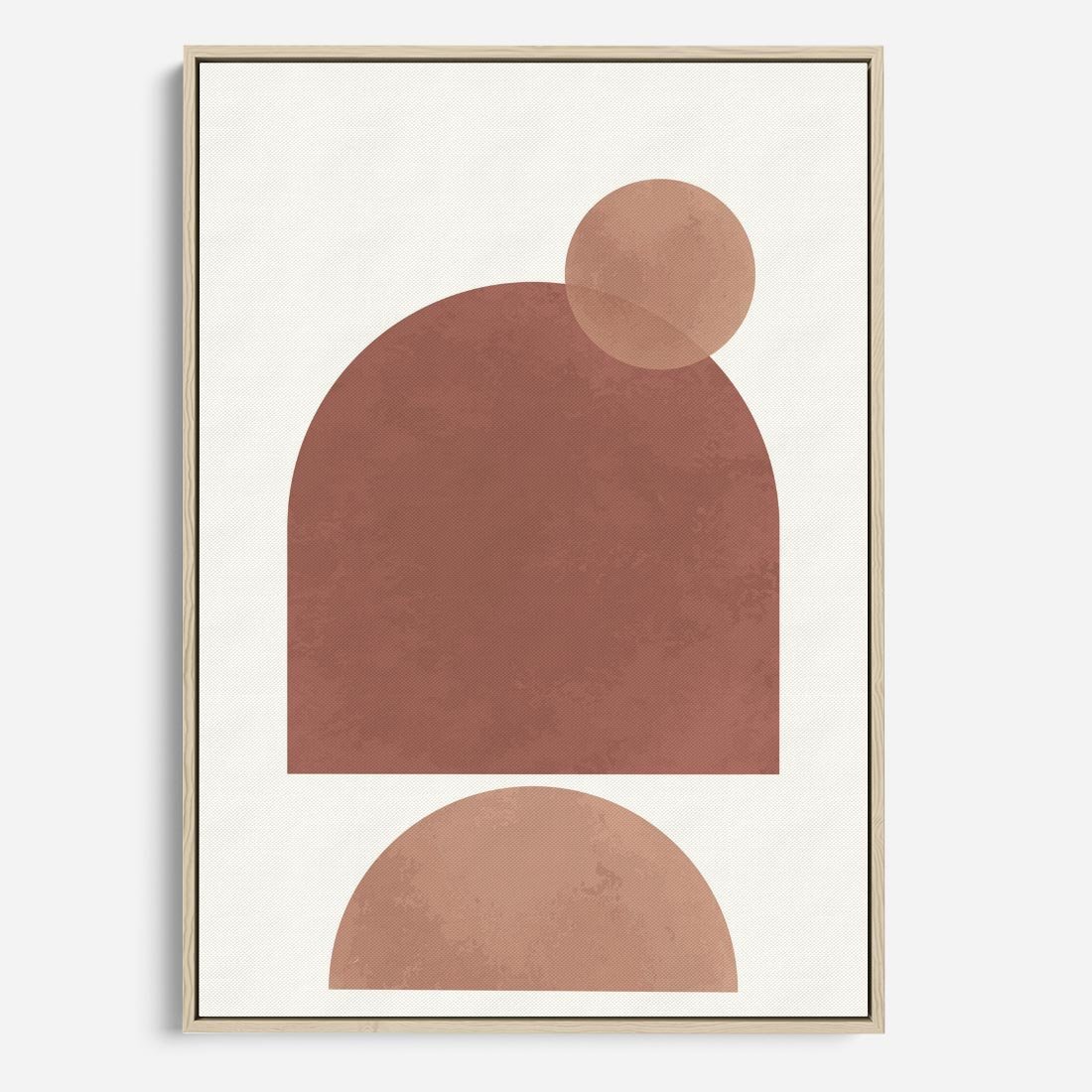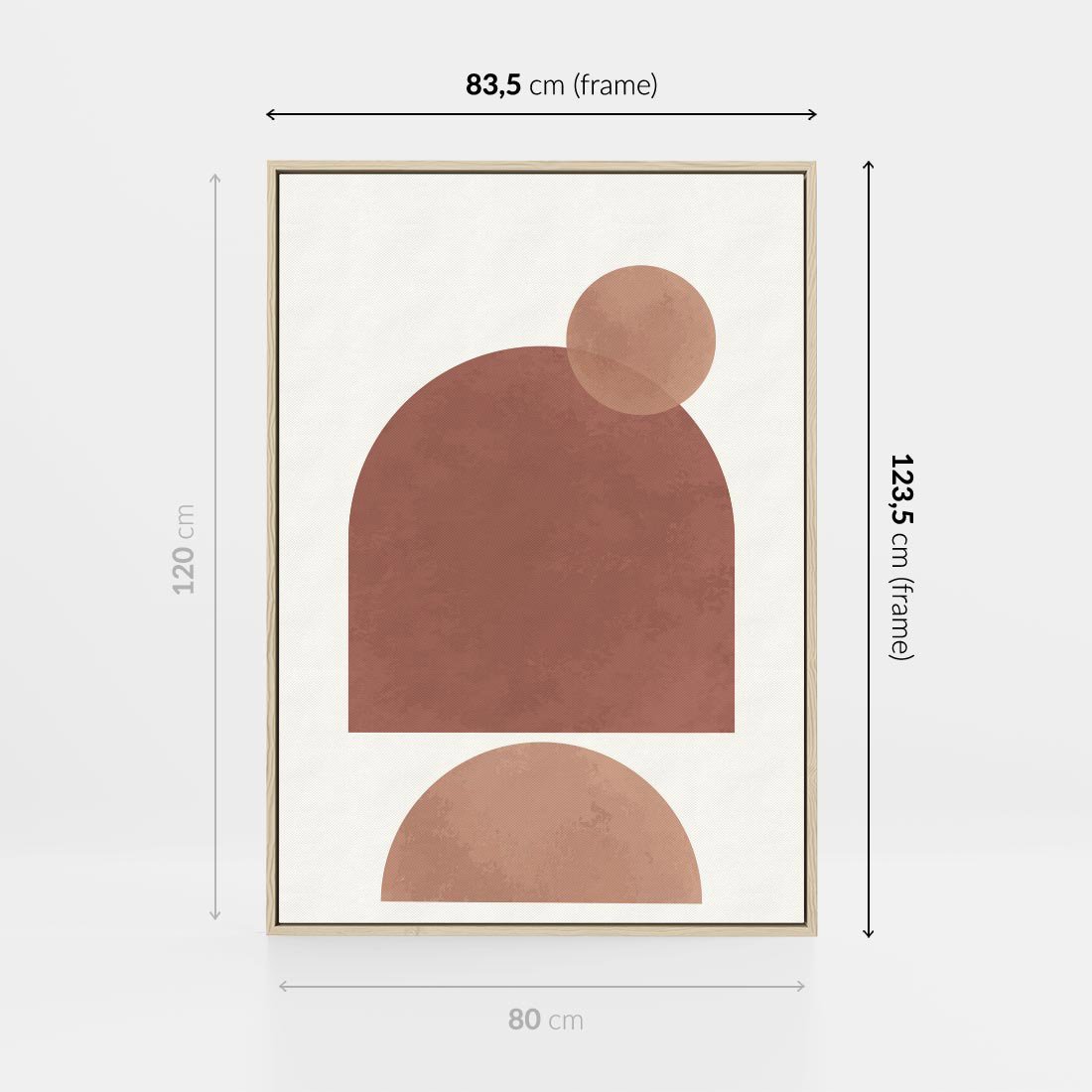 Ten plakat prezentuje abstrakcyjne, geometryczne kształty w odcieniach brązu i beżu, doskonale łącząc minimalizm z boho stylem. Idealny do nowoczesnych wnętrz.