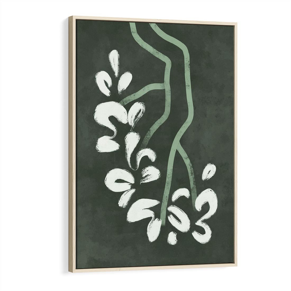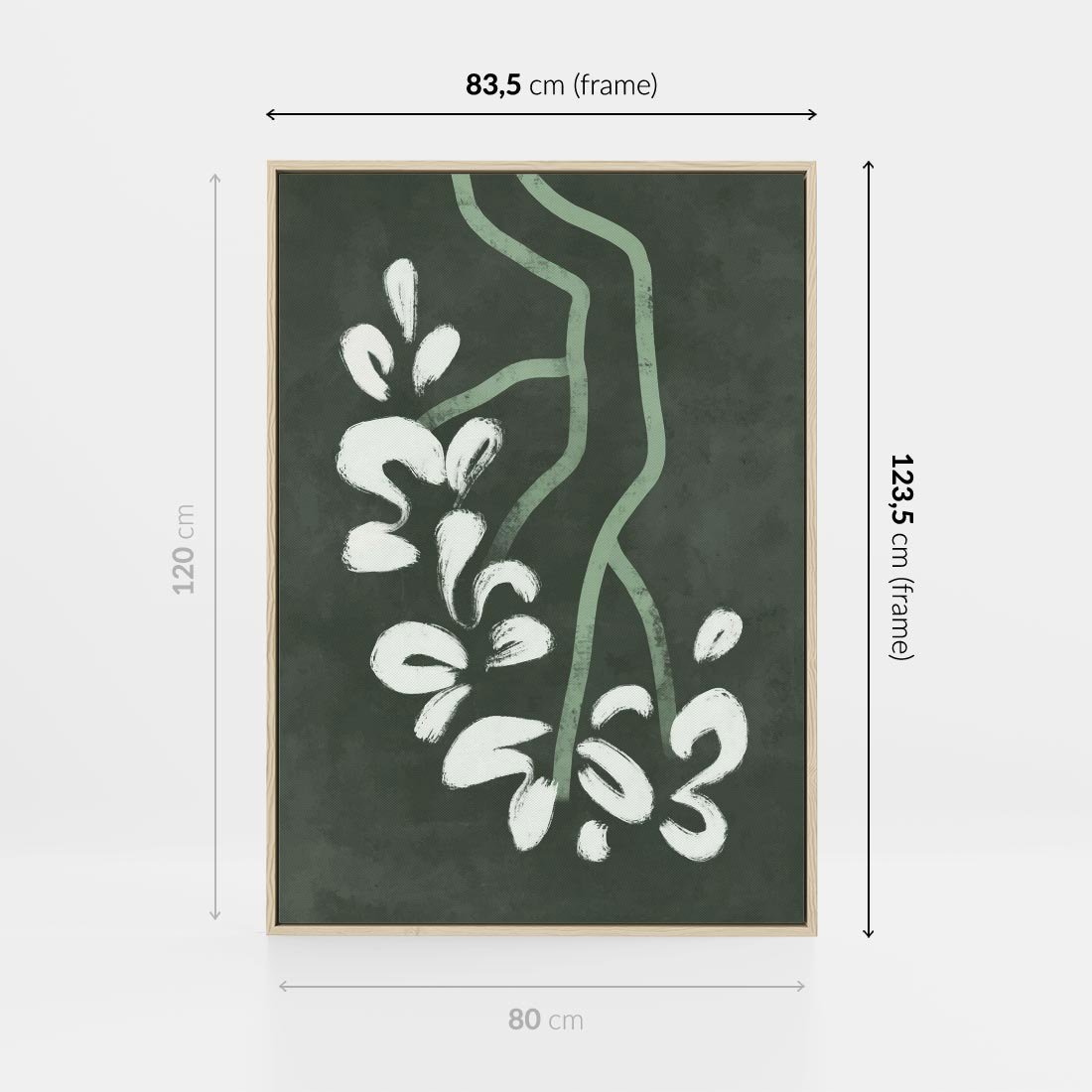 Ten nowoczesny plakat ukazuje abstrakcyjne, delikatne zielone linie przypominające gałęzie kwiatów. To wyjątkowe połączenie natury i nowoczesnej estetyki wprowadza do Twojej przestrzeni subtelność i oryginalność, tworząc jednocześnie interesujący akcent artystyczny.