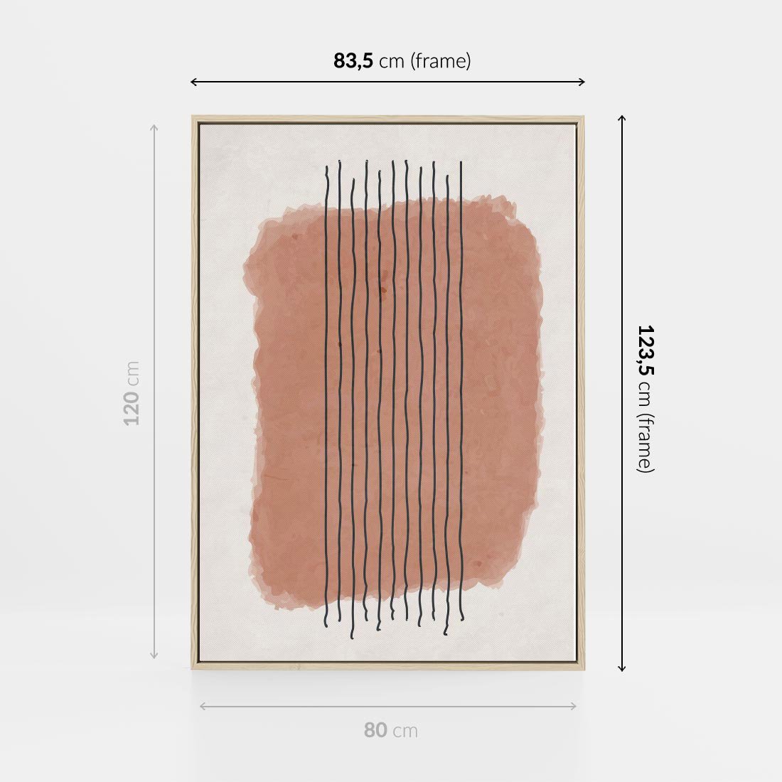 Abstrakcyjna akwarelowa plama ożywia ten minimalistyczny obraz nieregularnymi kreskami i subtelnie ułożonymi liniami, tworząc unikalną harmonię sztuki.